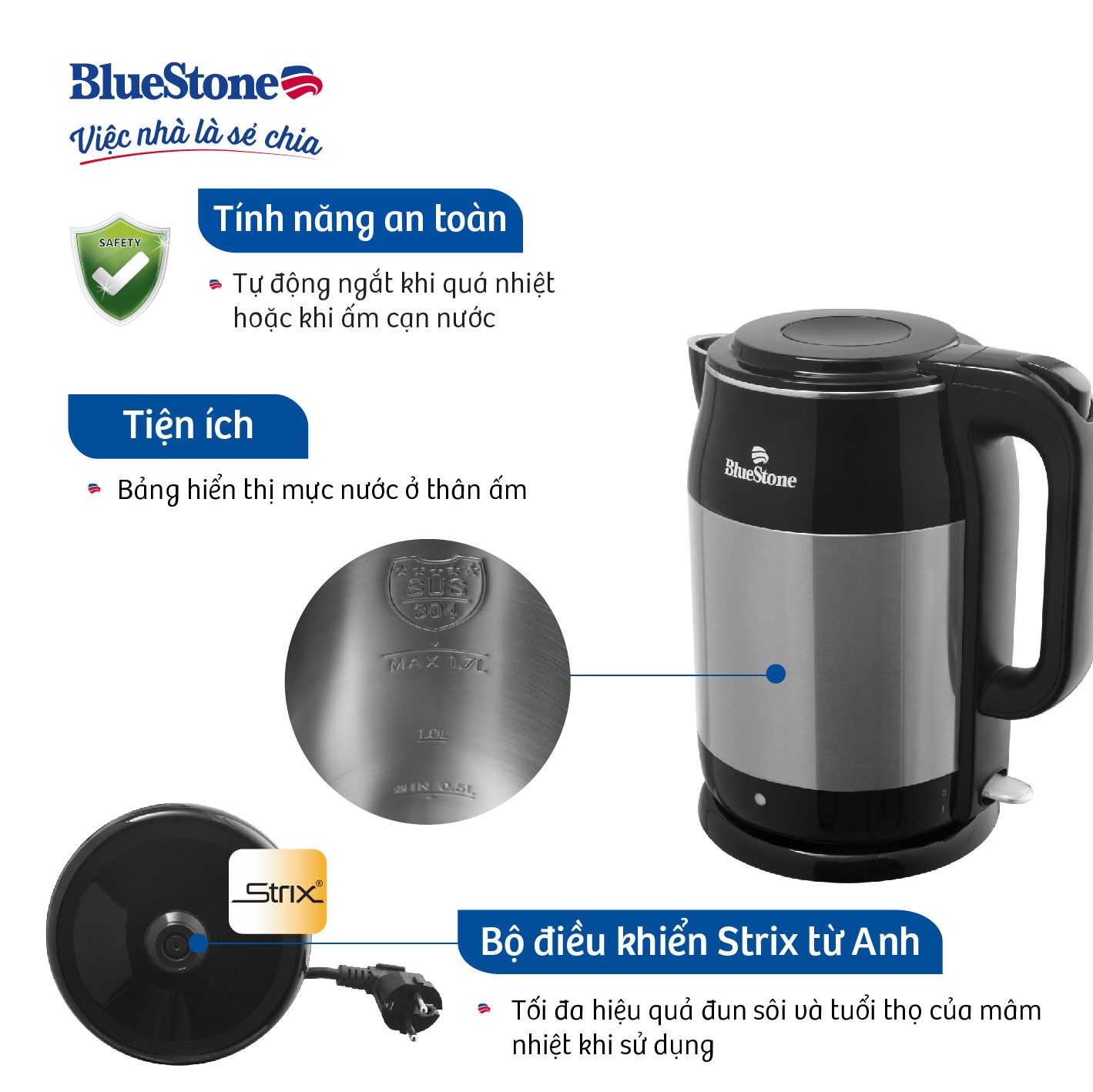 Ấm Đun Siêu Tốc BlueStone KTB-3468 1.7 Lít 1800W