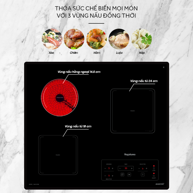 Bếp ba 2 điện từ 1 hồng ngoại Nagakawa NAG1253M