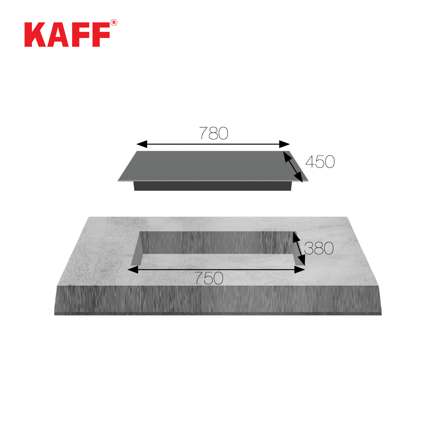 - Kích thước khoét đá: 750×380 mm