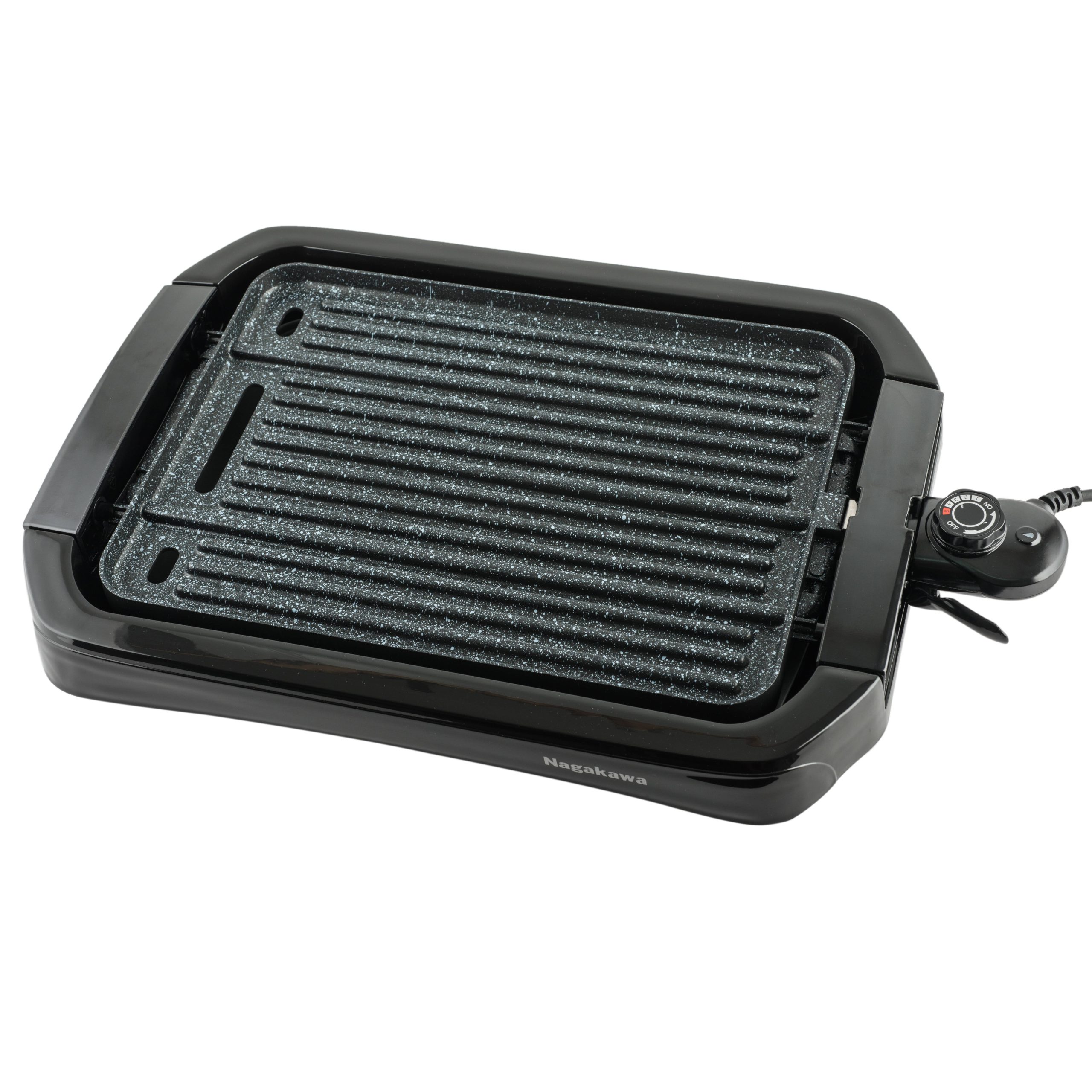 Bếp nướng điện Nagakawa NAG3102 (1800W) thiết kế hiện đại với gam màu đen sang trọng, chân đế chắc chắn, bền bỉ