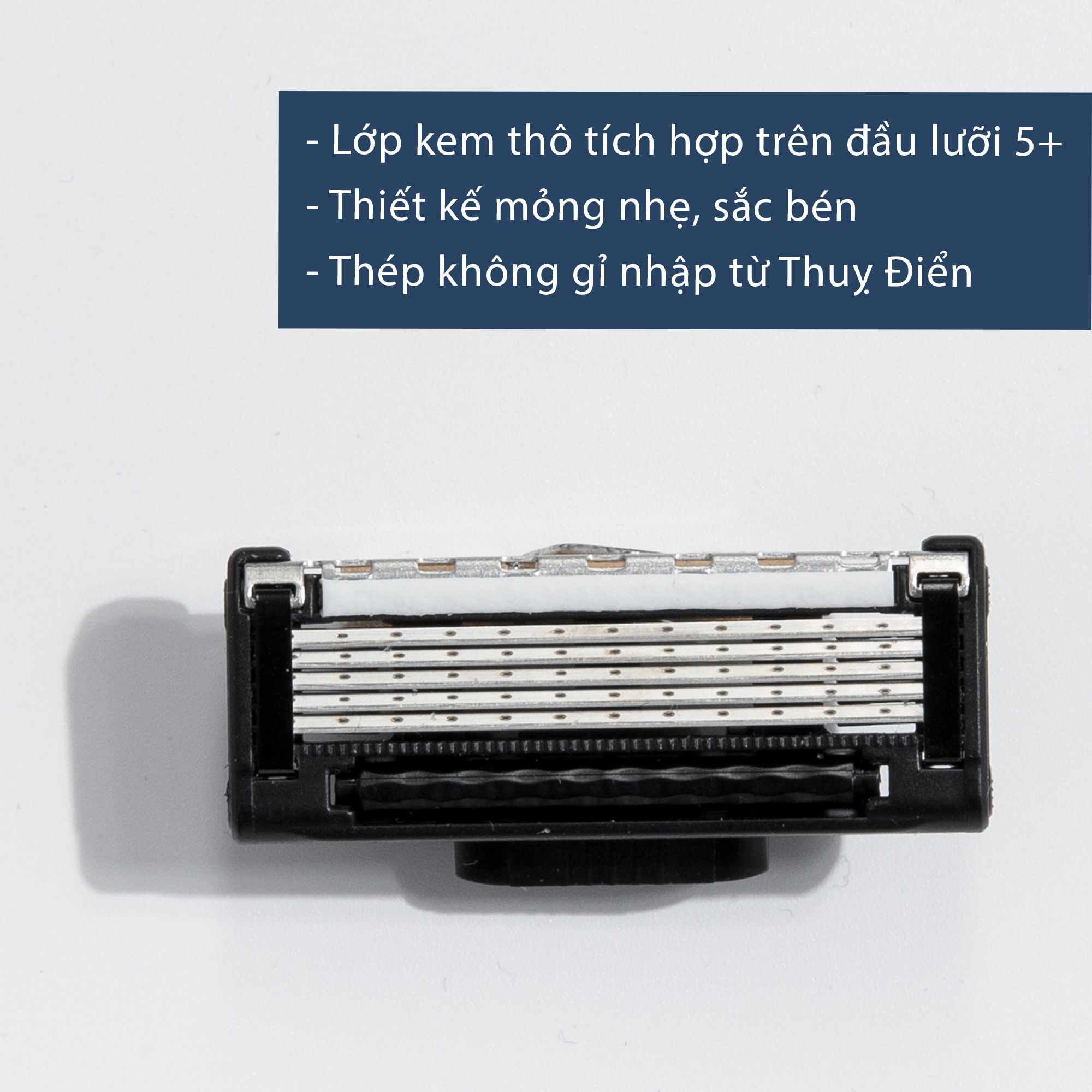 – Bộ 2 Lưỡi dao cạo râu CM24 5 Lưỡi + 1: là 5 lưỡi nhỏ sắc bén kèm 1 lưỡi tỉa được sản xuất bằng thép không gỉ của Thuỵ Điển, phủ Platin, Crom và Glide-polymer.