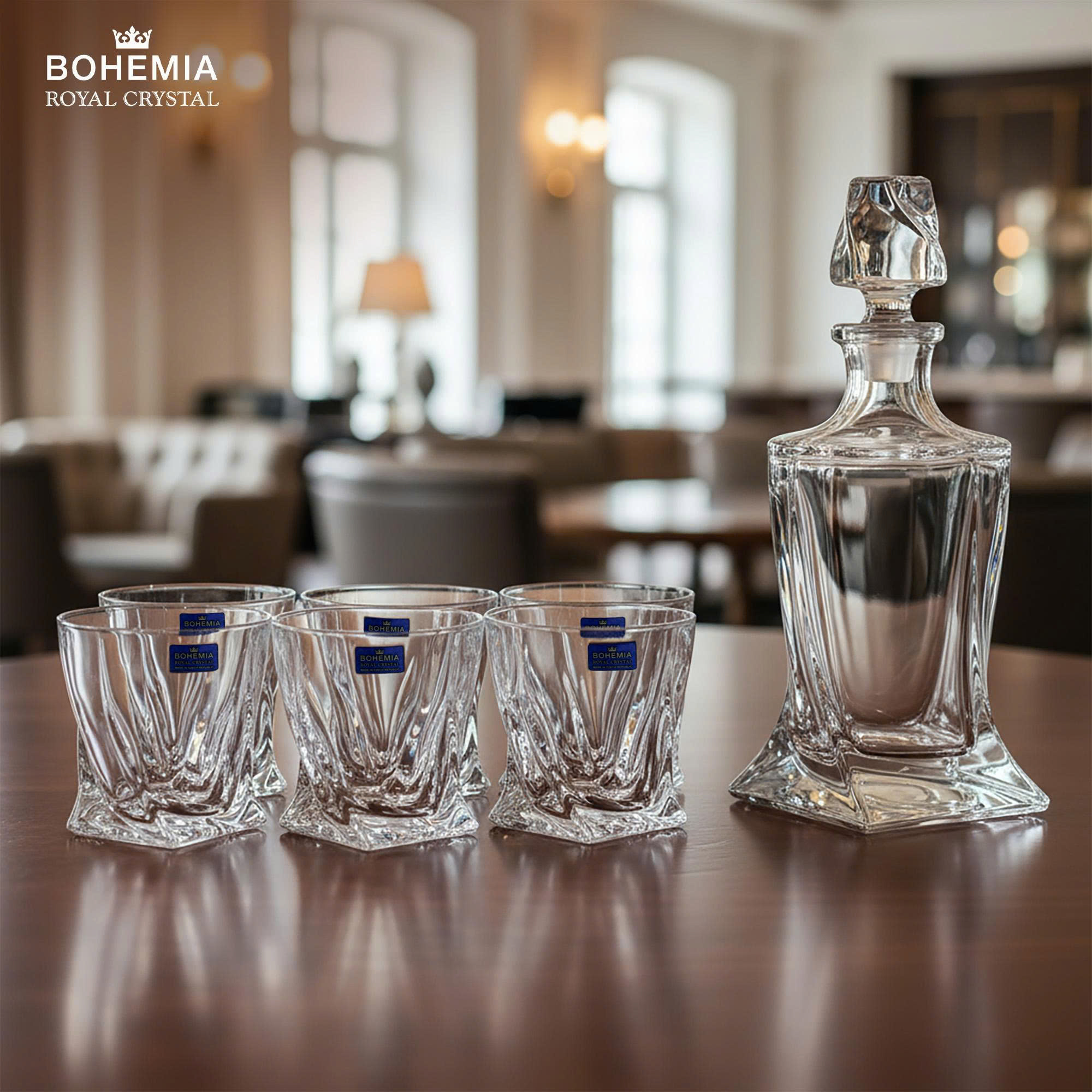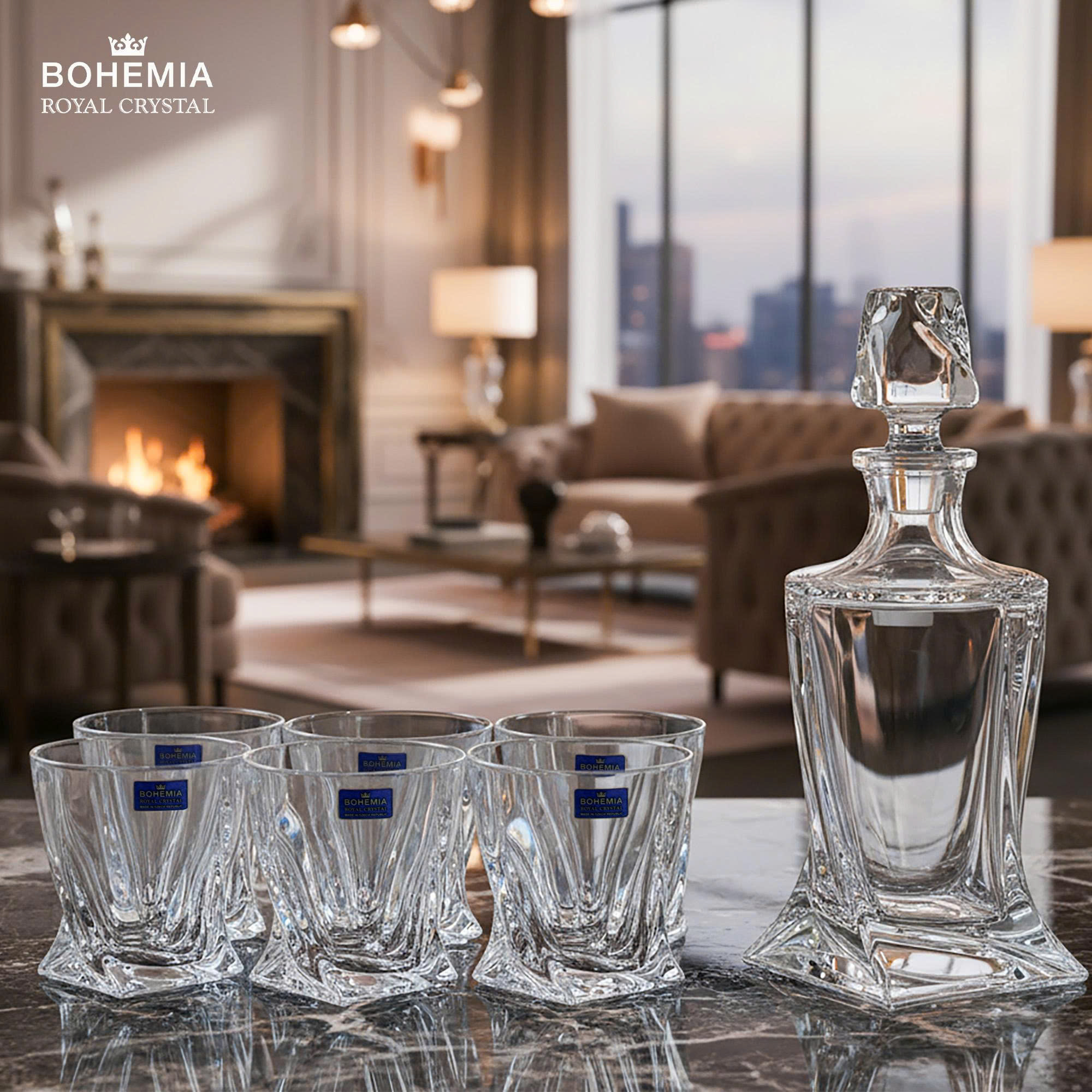 Bộ bình rượu Whisky 850ml và set 6 ly pha lê 340ml Bohemia Royal Crystal