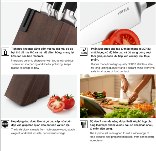 • Lưỡi dao: thép không gỉ 3CR13