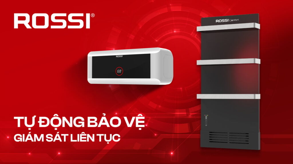 Bình nước nóng Rossi Touch và Máy sấy khăn Rossi Comfort được trang bị hệ thống đảm bảo an toàn đa lớp toàn diện, bao gồm ELCB chống giật, bảo vệ người dùng khỏi bị điện giật và phòng tránh nguy cơ cháy nổ. Đồng thời, bộ đôi Rơle trong Bình nước nóng Rossi Touch gồm: Rơle Nhiệt hoạt động bằng cách ngắt nguồn điện khi nước đã đủ nóng, ngăn chặn quá trình làm nóng liên tục gây lãng phí điện và đảm bảo nước luôn ở mức nhiệt độ lý tưởng; Rơle An toàn lại đóng vai trò kiểm soát, ngắt nguồn điện trong trường hợp Rơle Nhiệt không hoạt động.