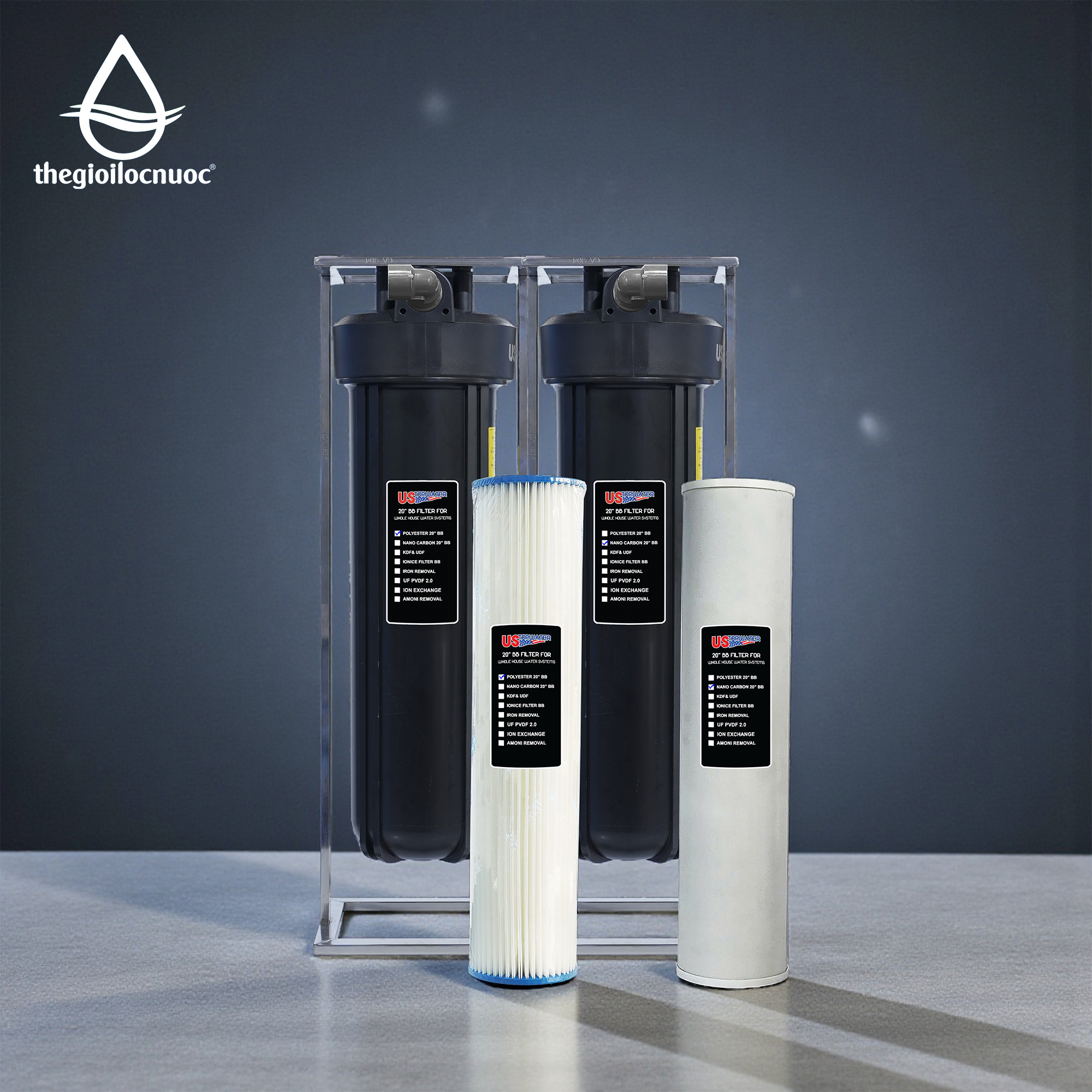 Lọc Tổng Mỹ USTOPWATER sử dụng bộ lõi lọc có hiệu suất lọc tối ưu thay thế cho phương pháp lọc tổng thông thường. Hệ thống lọc sử dụng lõi lọc vải Polyester 20inch béo gấp nếp USTOPWATER (made in Thái Lan) công suất lớn, thực hiện chức năng lọc hiệu quả mà không cần sục rửa, không cần làm mềm, không cần thay lõi thường xuyên nhờ áp dụng các công nghệ lọc mới nhất tại Mỹ.