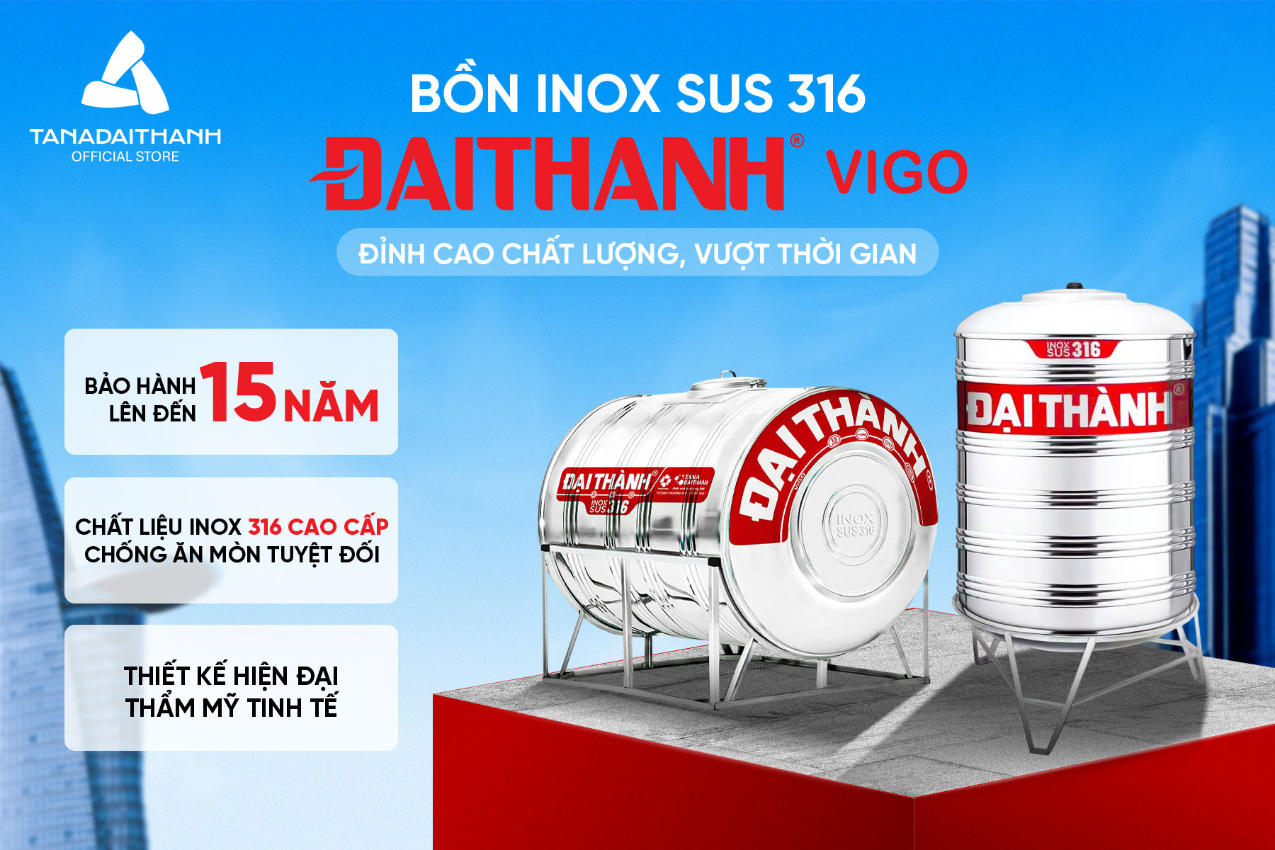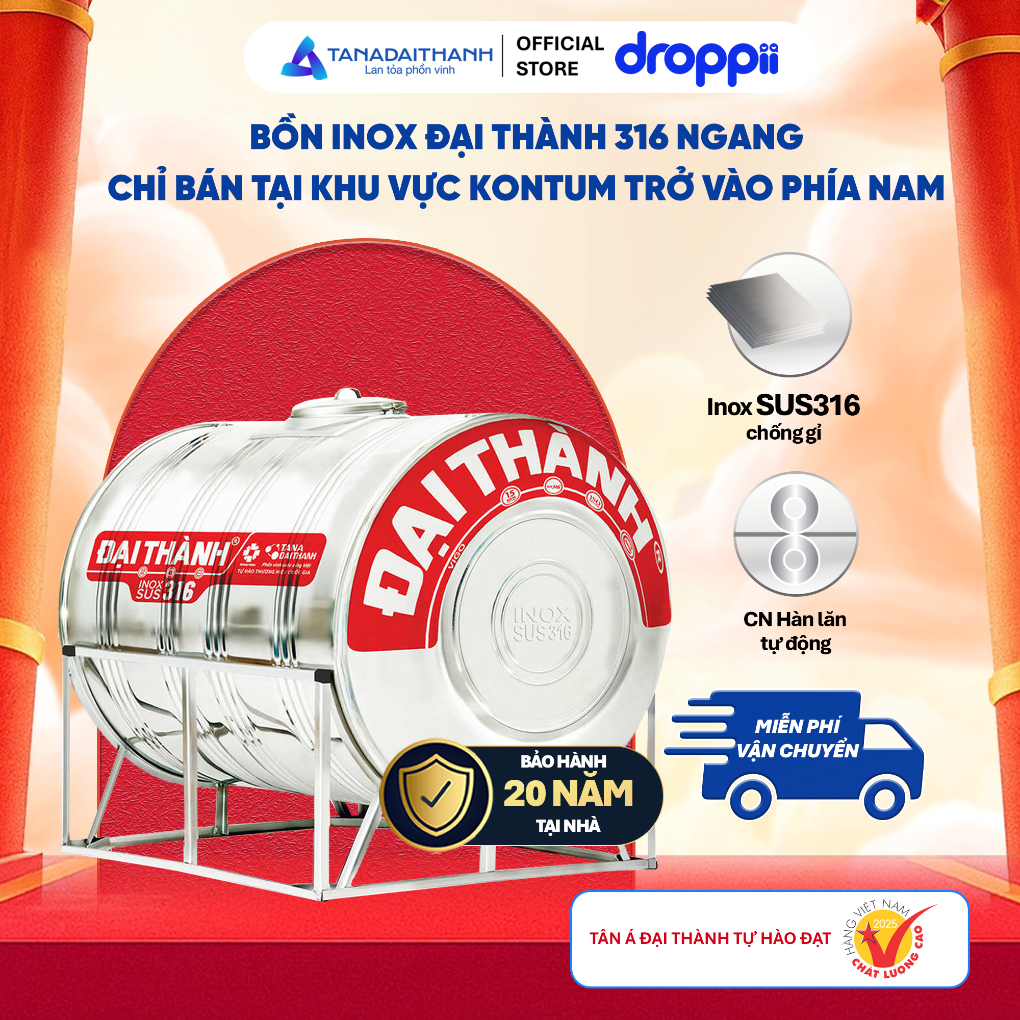 Bồn Inox 316 Đại Thành 1.500N ĐK 1170, CHỈ BÁN KHU VỰC MIỀN NAM