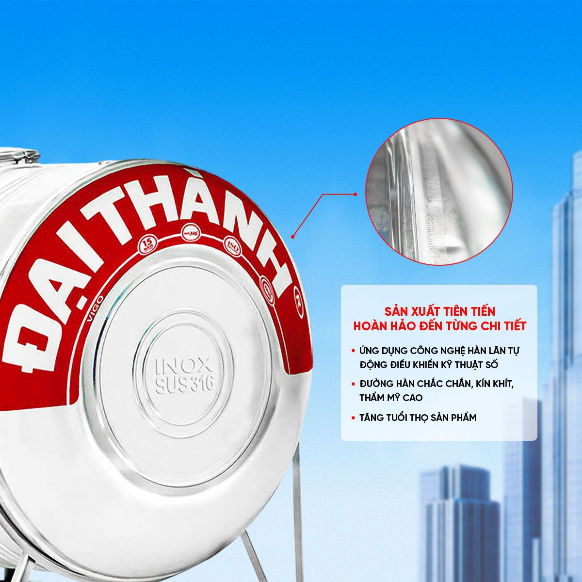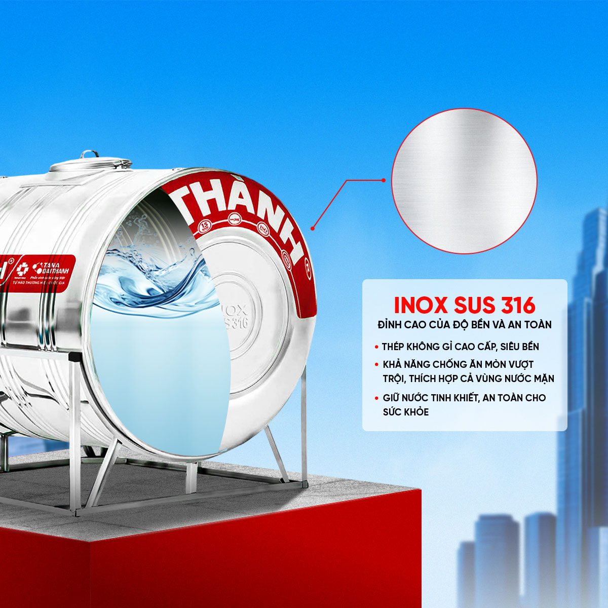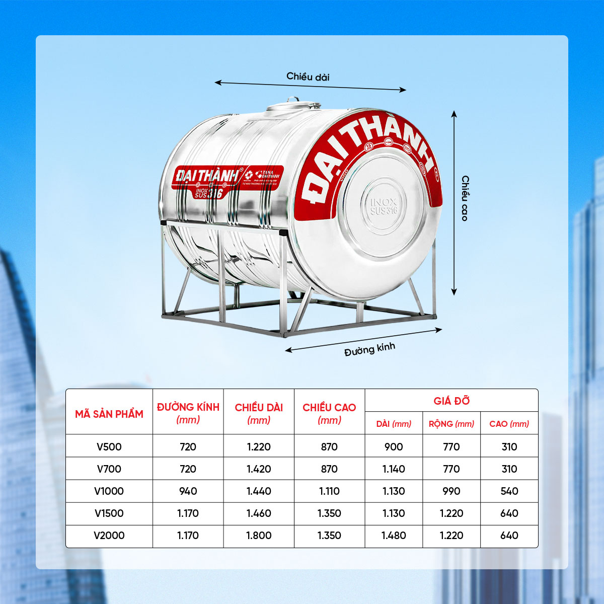 Bồn Inox 316 Đại Thành Ngang 500L ĐK 720 – CHỈ BÁN TẠI MIỀN NAM