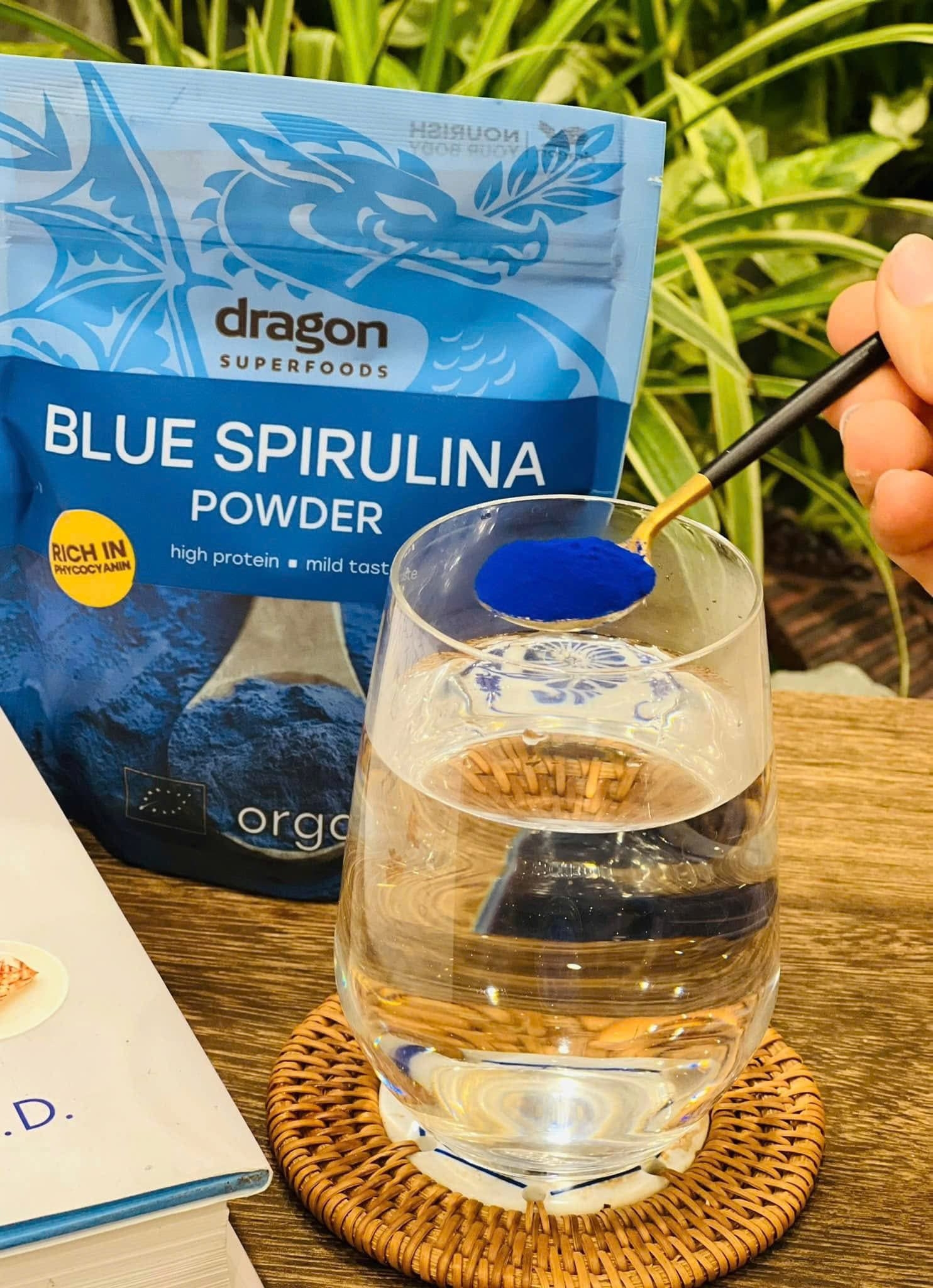 - 100% Bột tảo Blue Spirulina hữu cơ (chiết xuất từ tảo xoắn Spirulina – tảo lam, nông nghiệp hữu cơ).