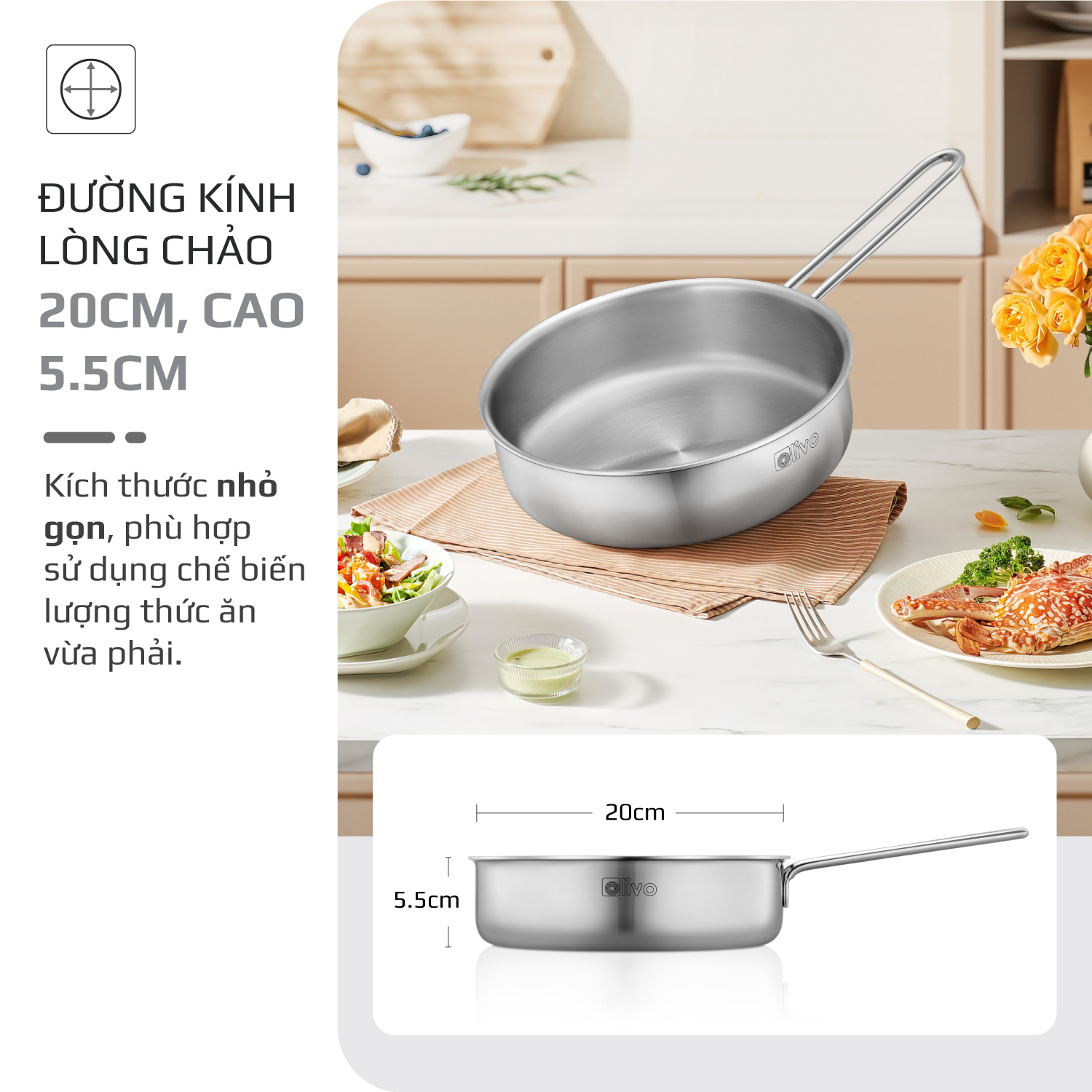 1. Tên sản phẩm: Chảo INOX Olivo 2055