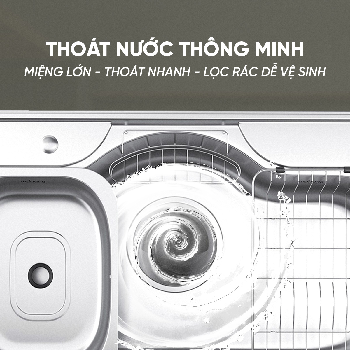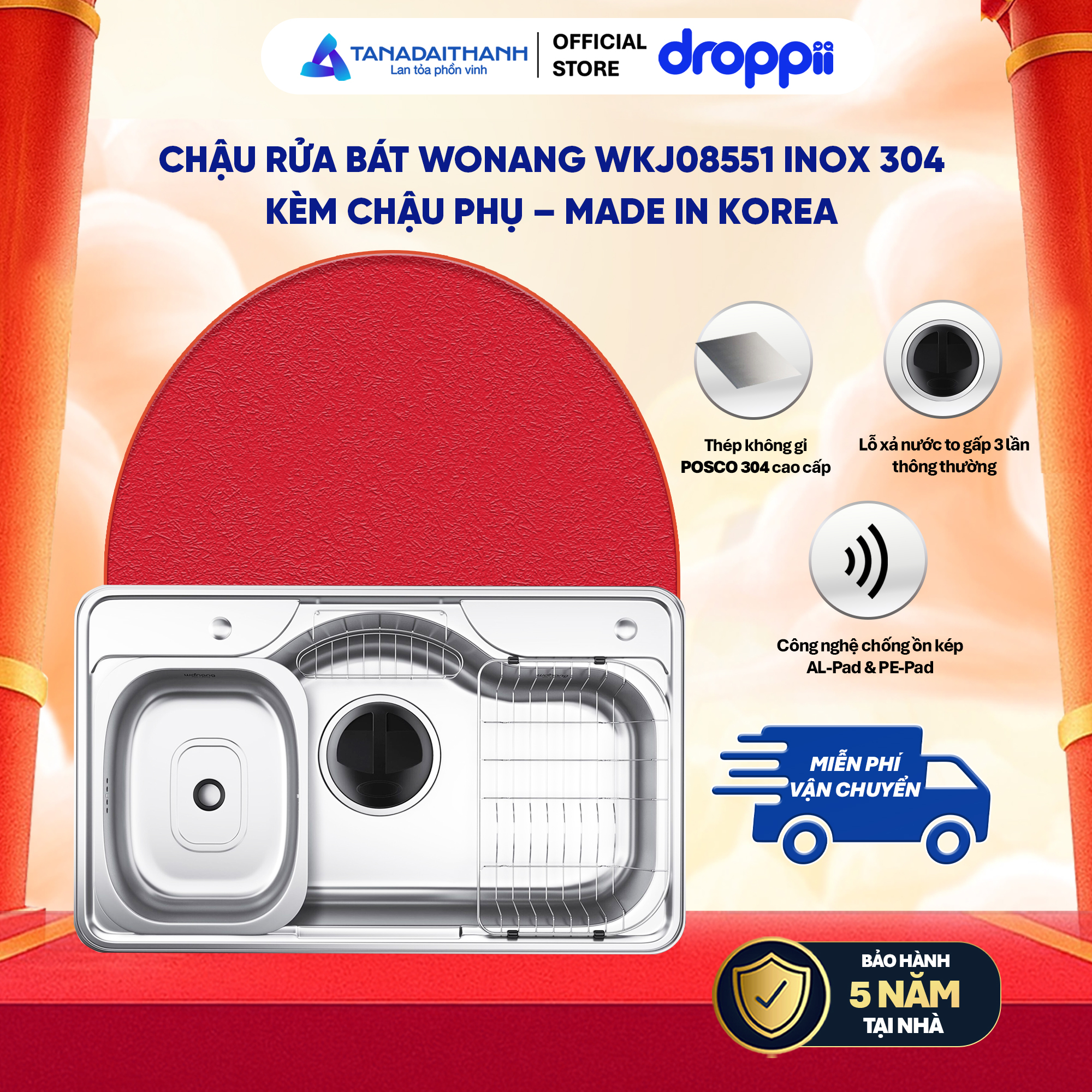 Chậu kép rửa bát Wonang WKJ08551 một hố inox 304 – Made In Korea (kèm chậu phụ)
