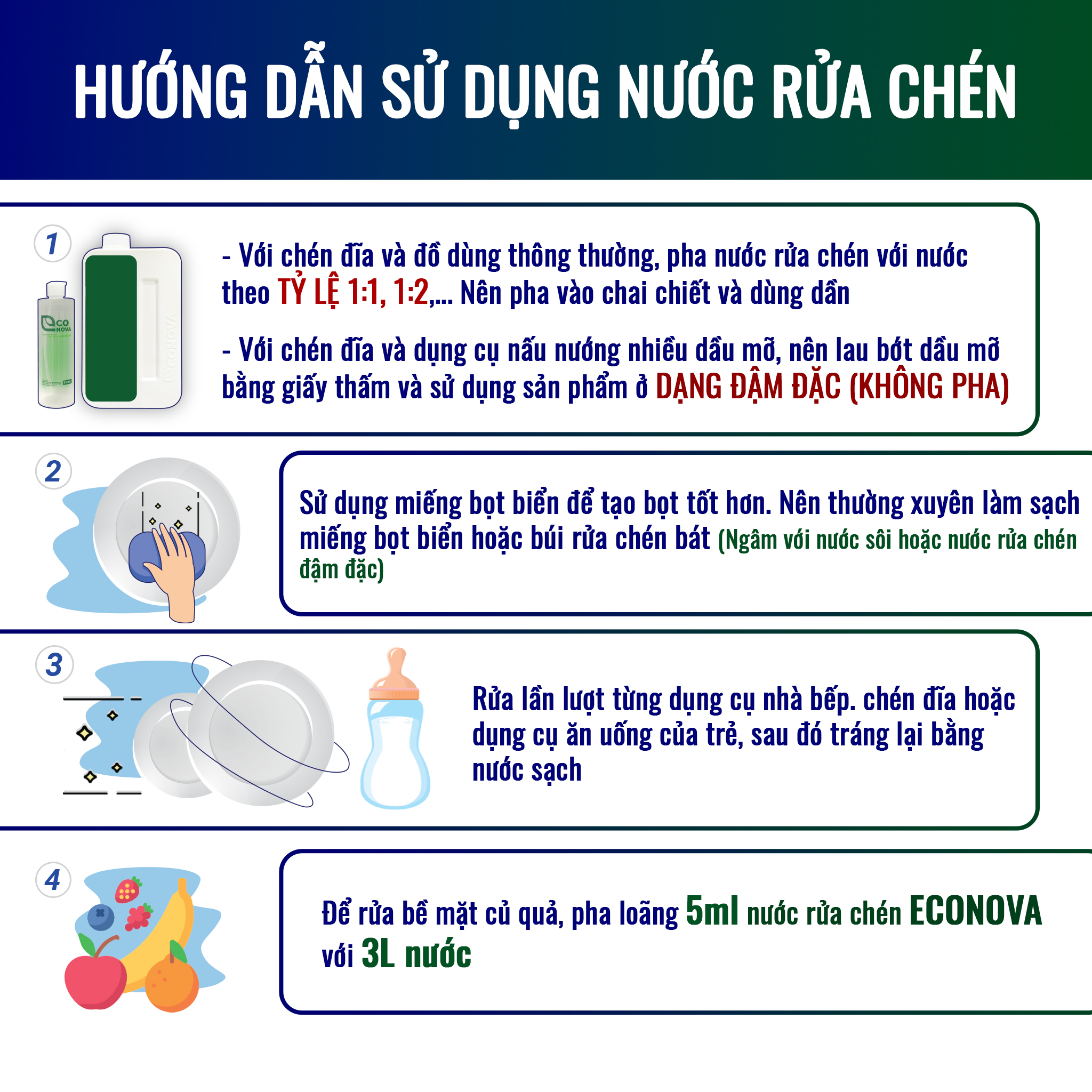 6. Hướng dẫn sử dụng: Sử dụng một lượng vừa đủ để rửa chén bát, bề mặt hoa quả, không sử dụng mục đích khác.
