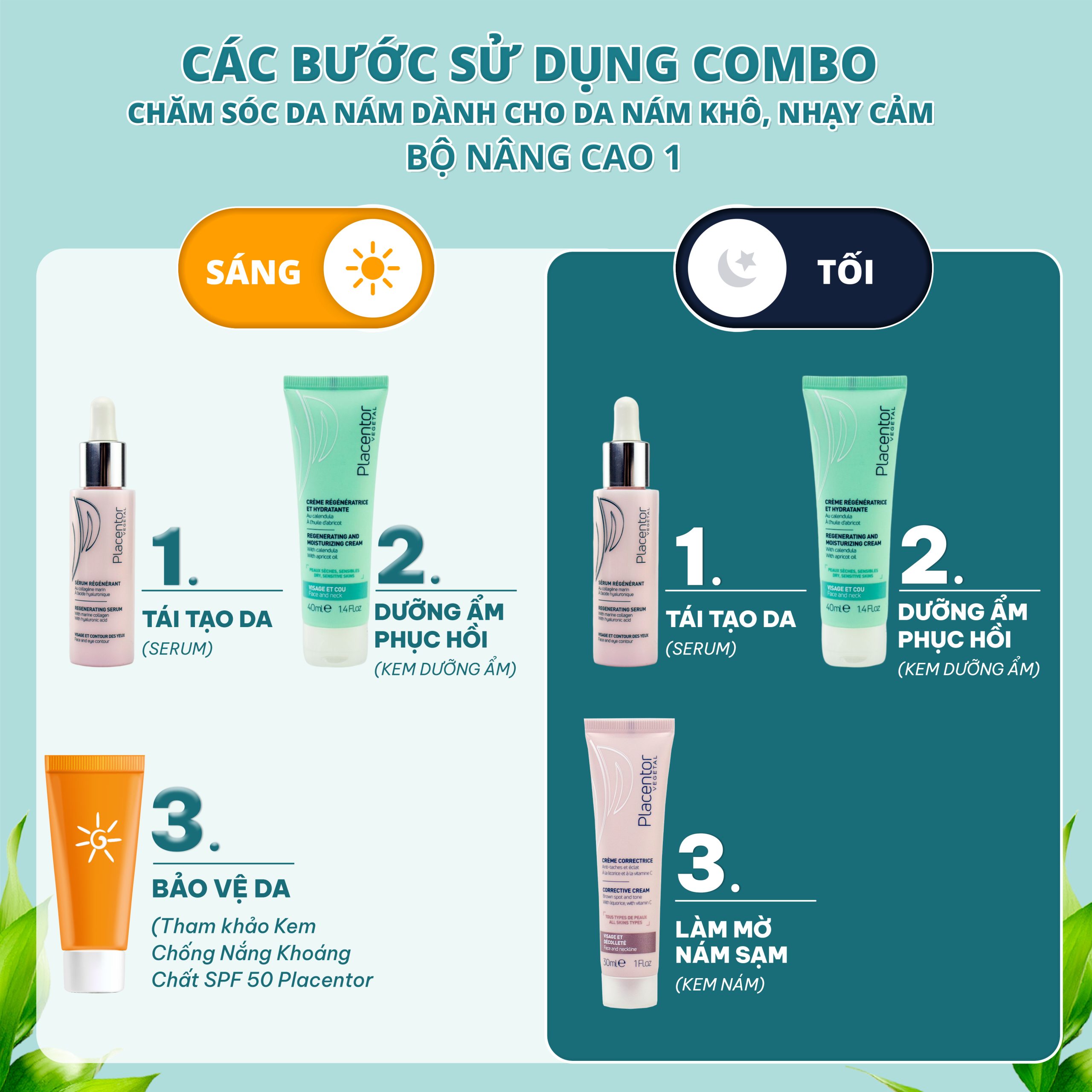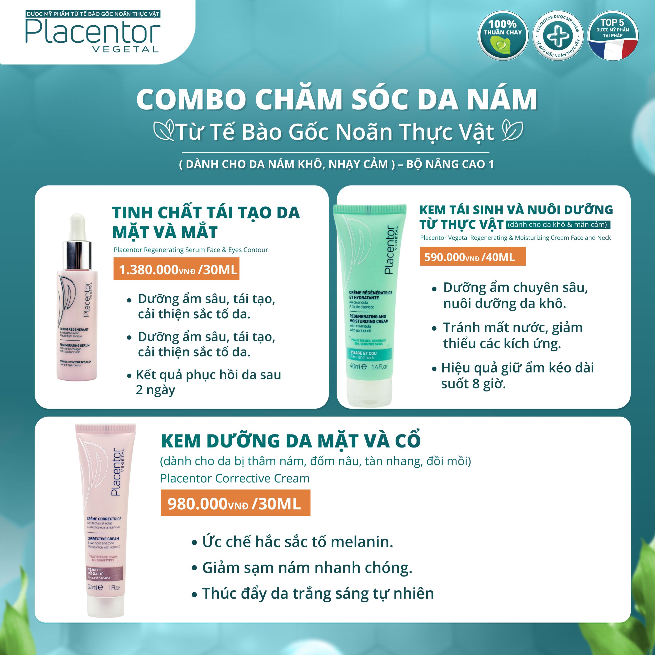 Combo chăm sóc da nám từ tế bào gốc noãn thực vật – Dành cho da nám khô, nhạy cảm