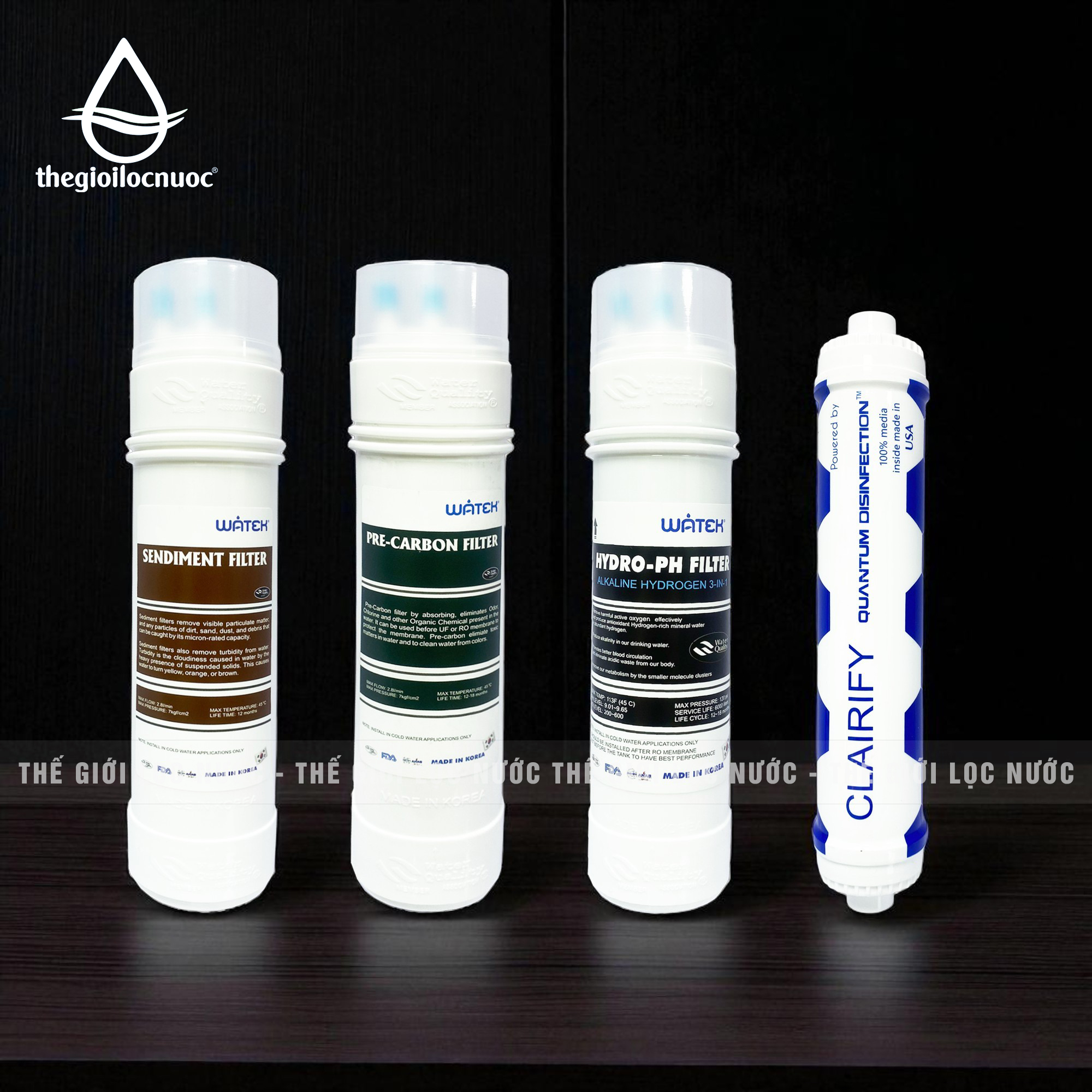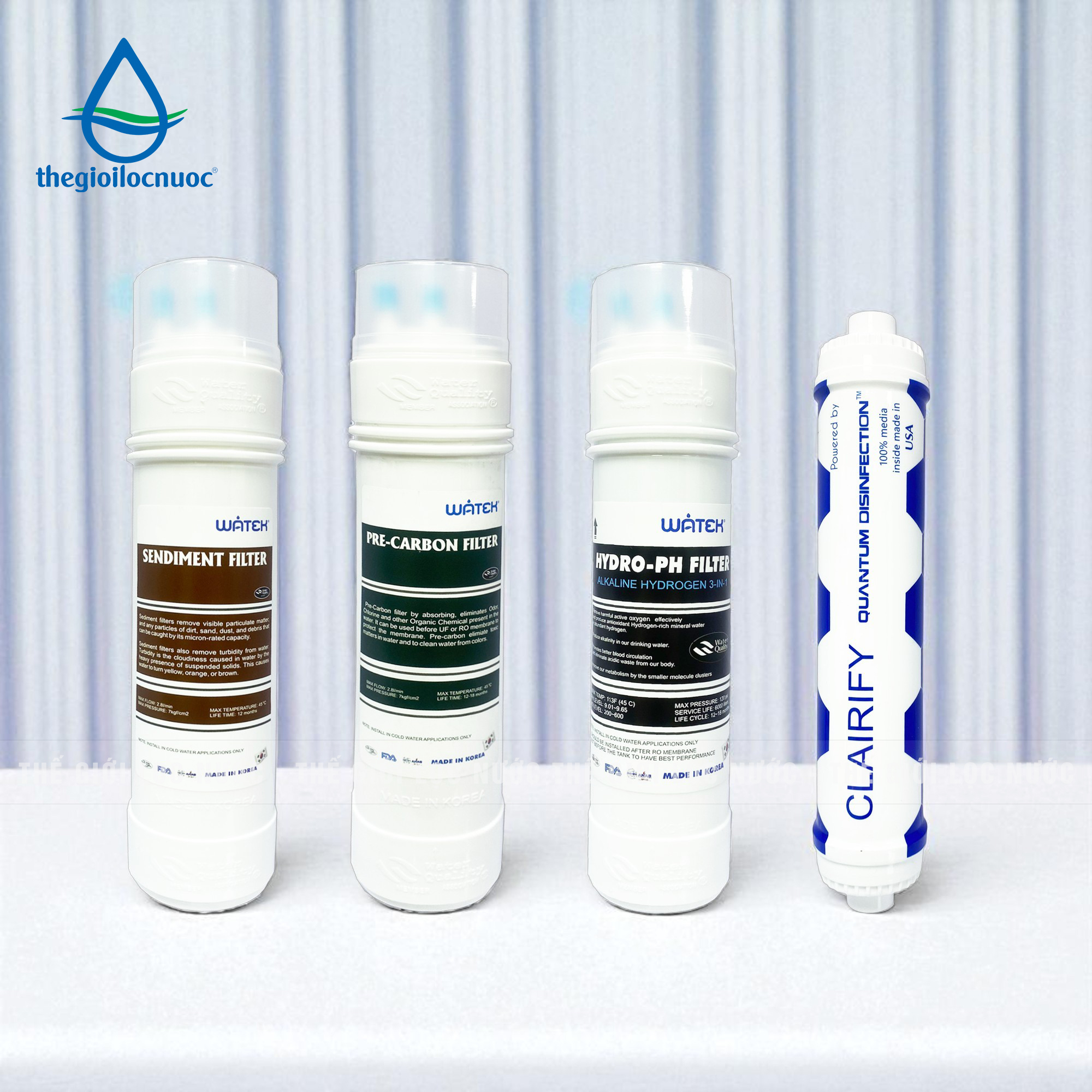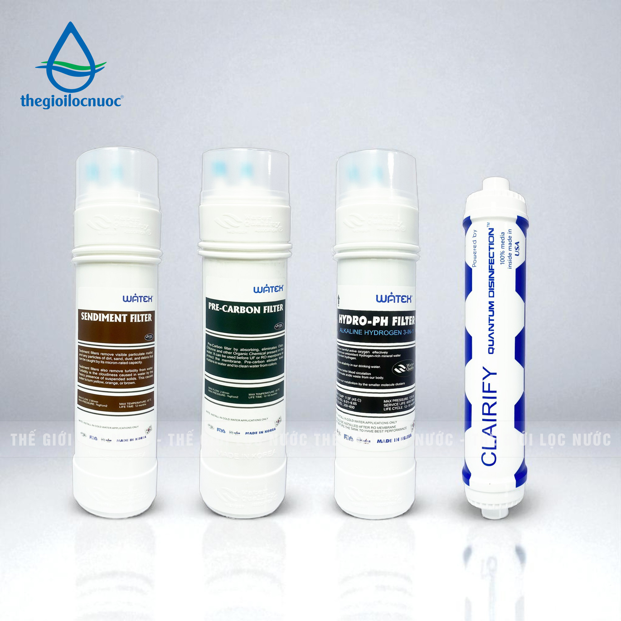 LÕI LỌC SENDIMENT ĐÚC NGUYÊN KHỐI HÀN QUỐC – Công suất: 120 lít/ h – Tuổi thọ: 12 tháng – Nhiệt độ tối đa: 40 độ C – Xuất xứ: Hàn Quốc LÕI LỌC PRE-CARBON ĐÚC NGUYÊN KHỐI HÀN QUỐC – Công suất: 120 lít/ h – Tuổi thọ: 18 tháng – Nhiệt độ tối đa: 40 độ C – Xuất xứ: Hàn Quốc LÕI TẠO KIỀM HYDROGEN 3in1 (HYDRO-PH FILTER) – Công suất: 120 lít/ h – Tuổi thọ: 6000 lít – Nhiệt độ tối đa: 45 độ C – Xuất xứ: Hàn Quốc – Chứng nhận WQA – Hoa Kỳ (in dập nổi) LÕI LỌC DIỆT KHUẨN LƯỢNG TỬ – QUANTUM DISINFECTION – Công suất: 120 lít/ h – Tuổi thọ: 60 tháng (19.000 lít) – Nhiệt độ tối đa: 40 độ C – Xuất xứ: Hạt lượng tử 100% Made in Canada |
