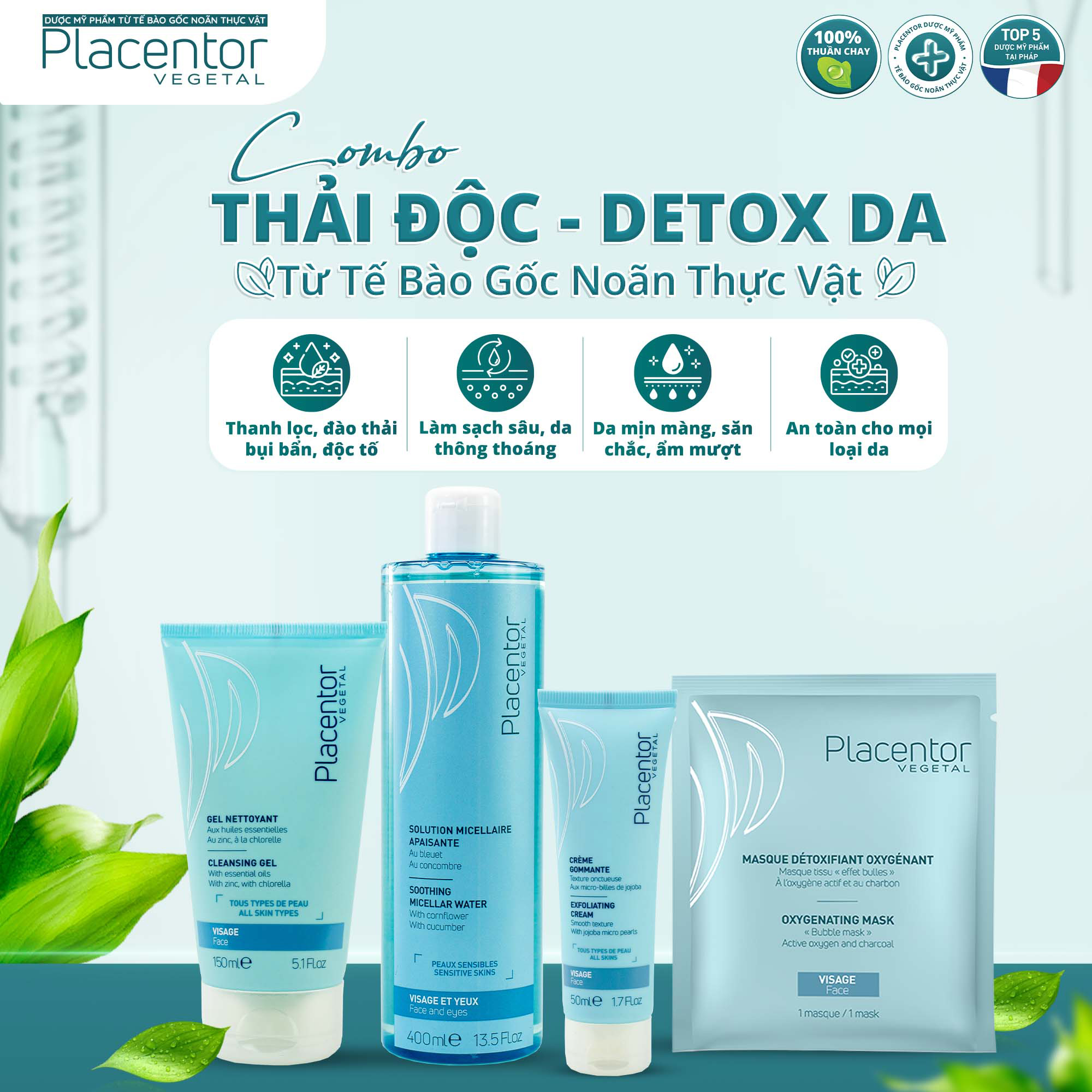Combo thải độc, detox da từ tế bào gốc noãn thực vật Placentor