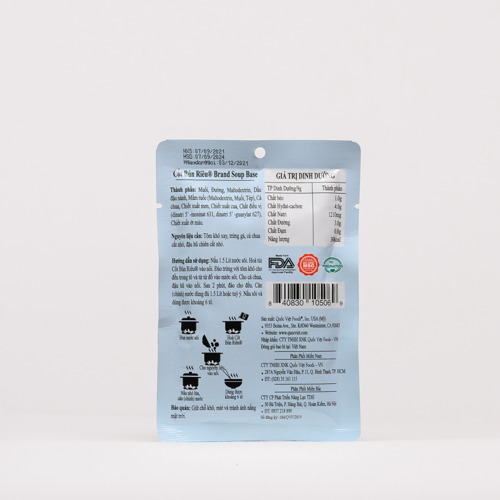 1. Tên sản phẩm: Cốt gia vị Bún Riêu 50g – Vietnam Crab Soup Base