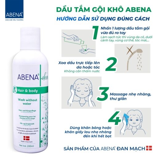 Cách sử dụng dầu gội tắm khô Abena: