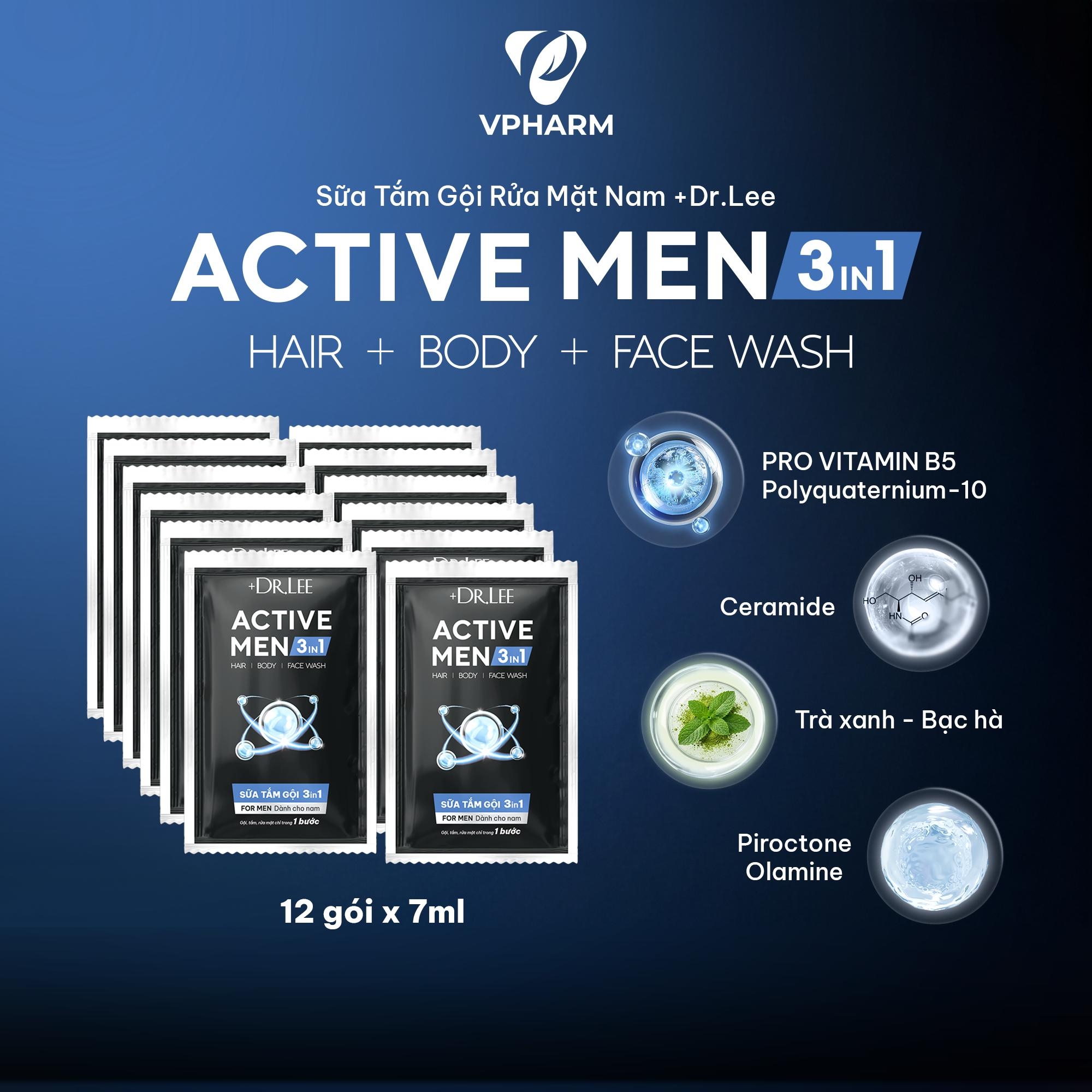 Dây 12 gói Sữa Tắm Gội Rửa Mặt Nam 3in1 +Dr.lee Active Men