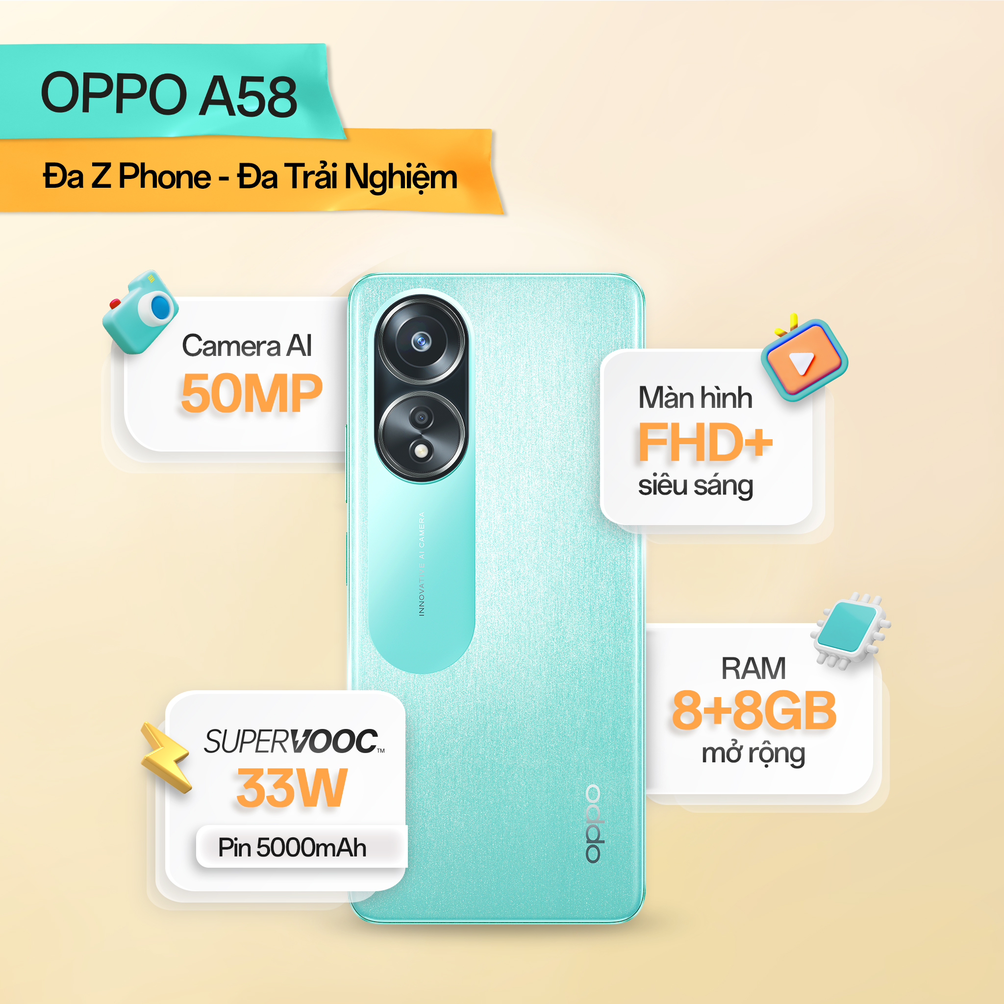 1. Tên sản phẩm: OPPO A58 8GB (Đen, Xanh)