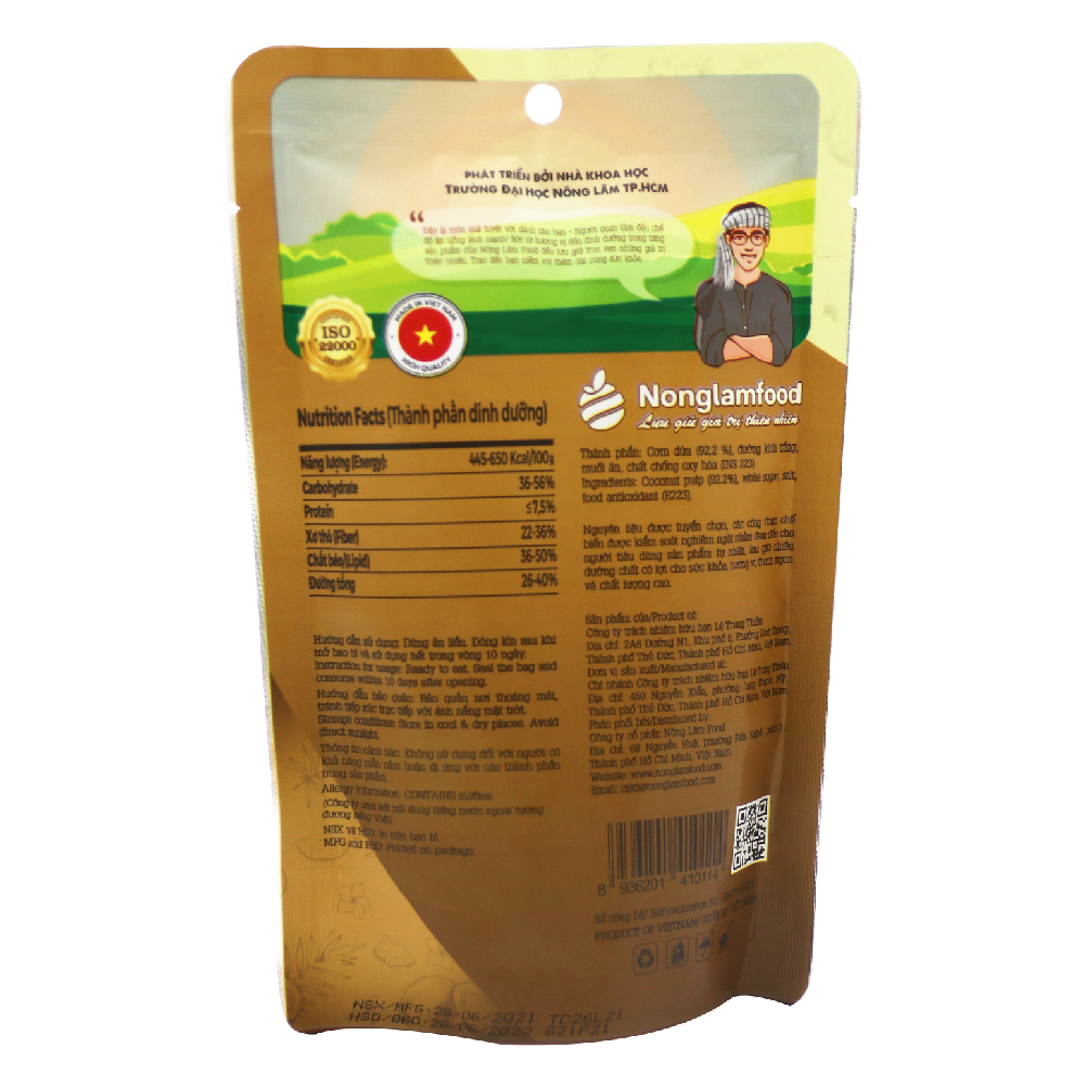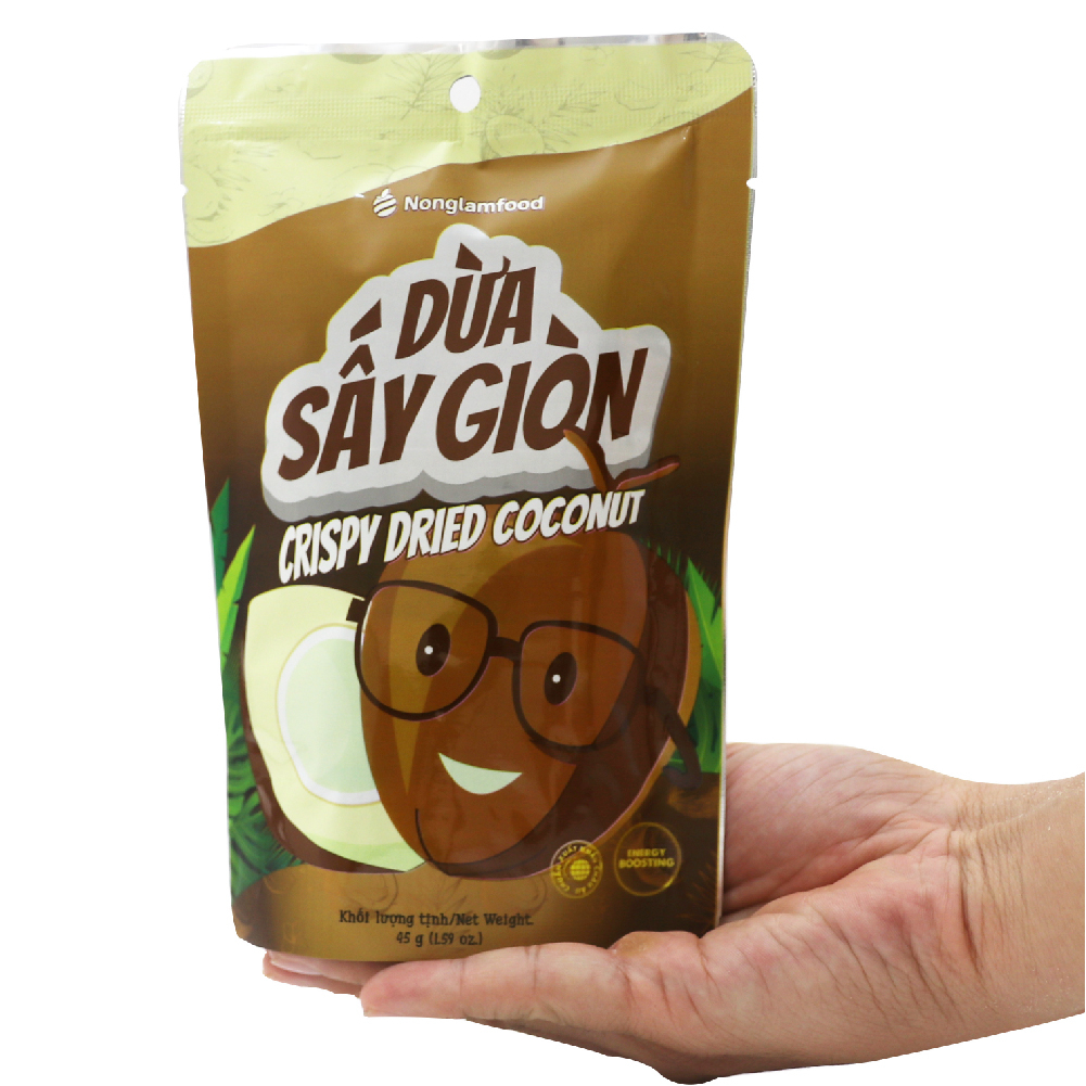 1. Tên sản phẩm: Dừa Sấy Giòn Nonglamfood Túi 45g