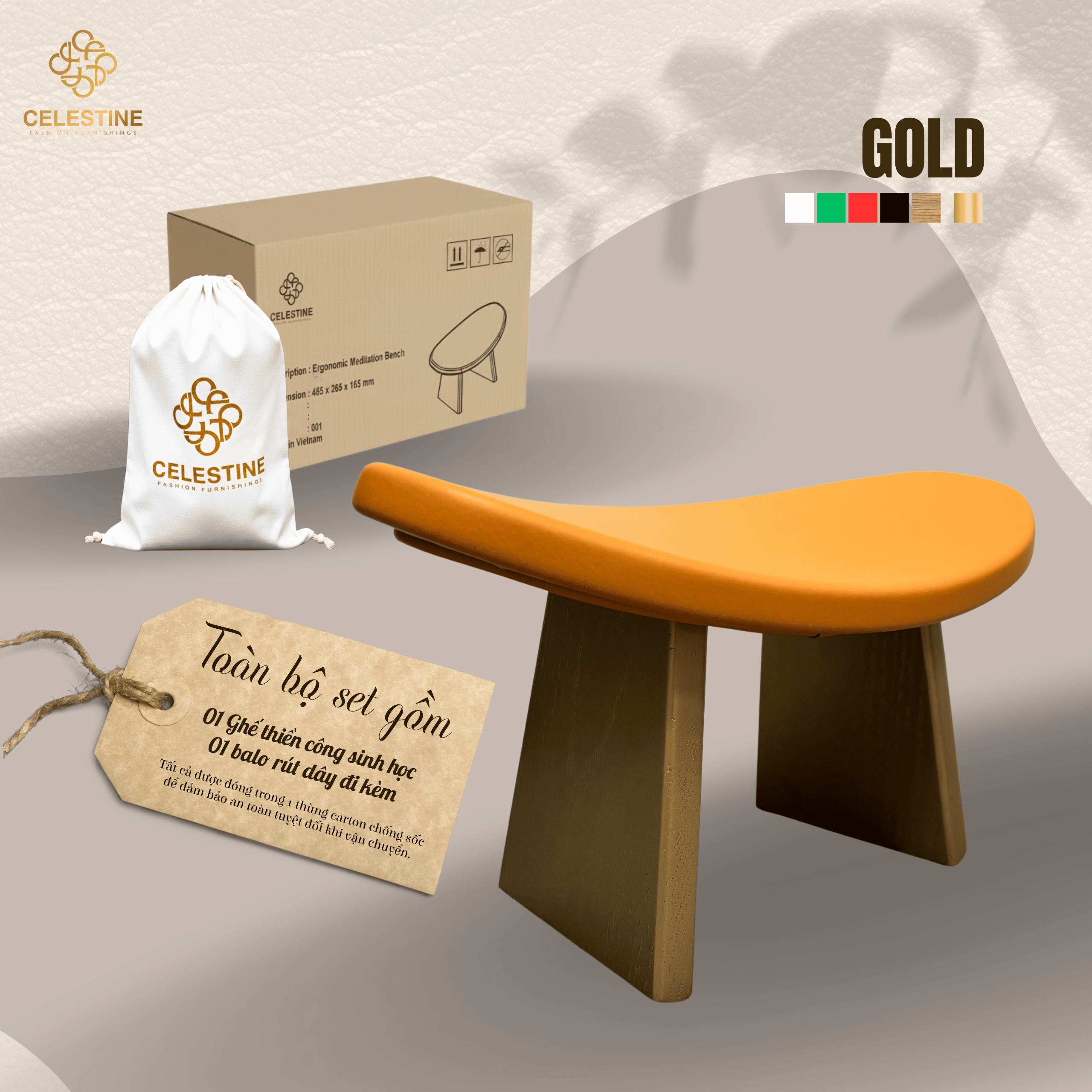 Gold là biểu tượng của thịnh vượng, minh triết và vị thế. Đặt chiếc ghế này trong phòng làm việc, phòng thiền riêng hay khu nghỉ dưỡng cá nhân không phải để phô bày — mà để khẳng định phong cách sống đã được chọn lọc.