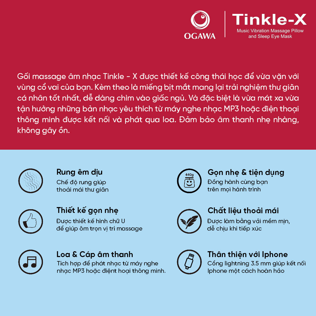 Gối massage âm nhạc kèm miếng che mắt ngủ (OL-0502X)