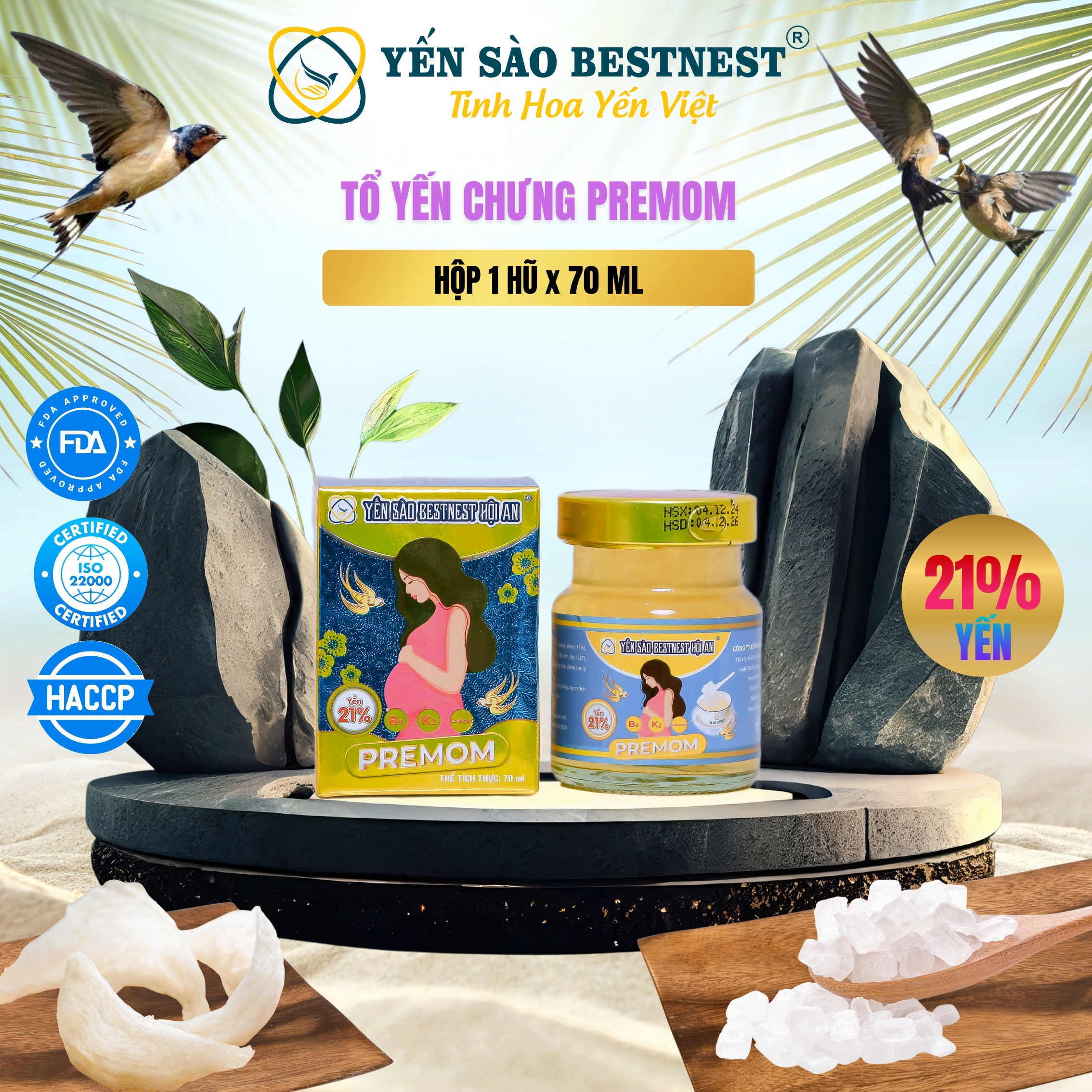 Hộp 1 hũ Yến Sào BESTNEST HỘI AN 21% Premom