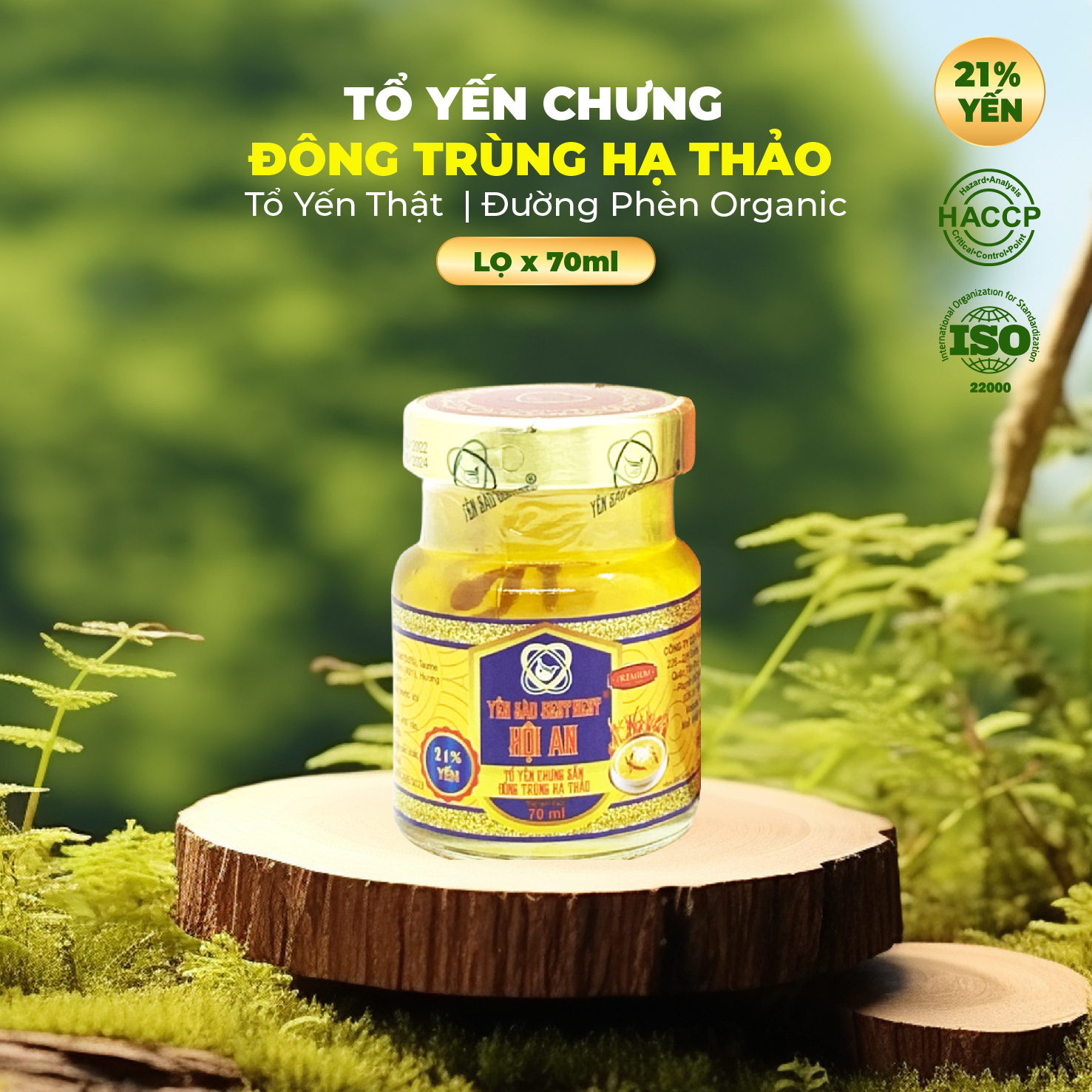| Thành phần | Tổ yến (21%), Đường phèn (15%), Đông trùng hạ thảo (3,5%), Nước, Chất làm dày (327), Chất ổn định (401), Hương liệu tổng hợp dùng trong thực phẩm. |