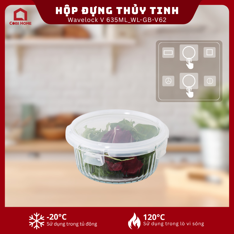Hộp đựng thực phẩm thủy tinh Neoflam Wavelock V 635ML__364367