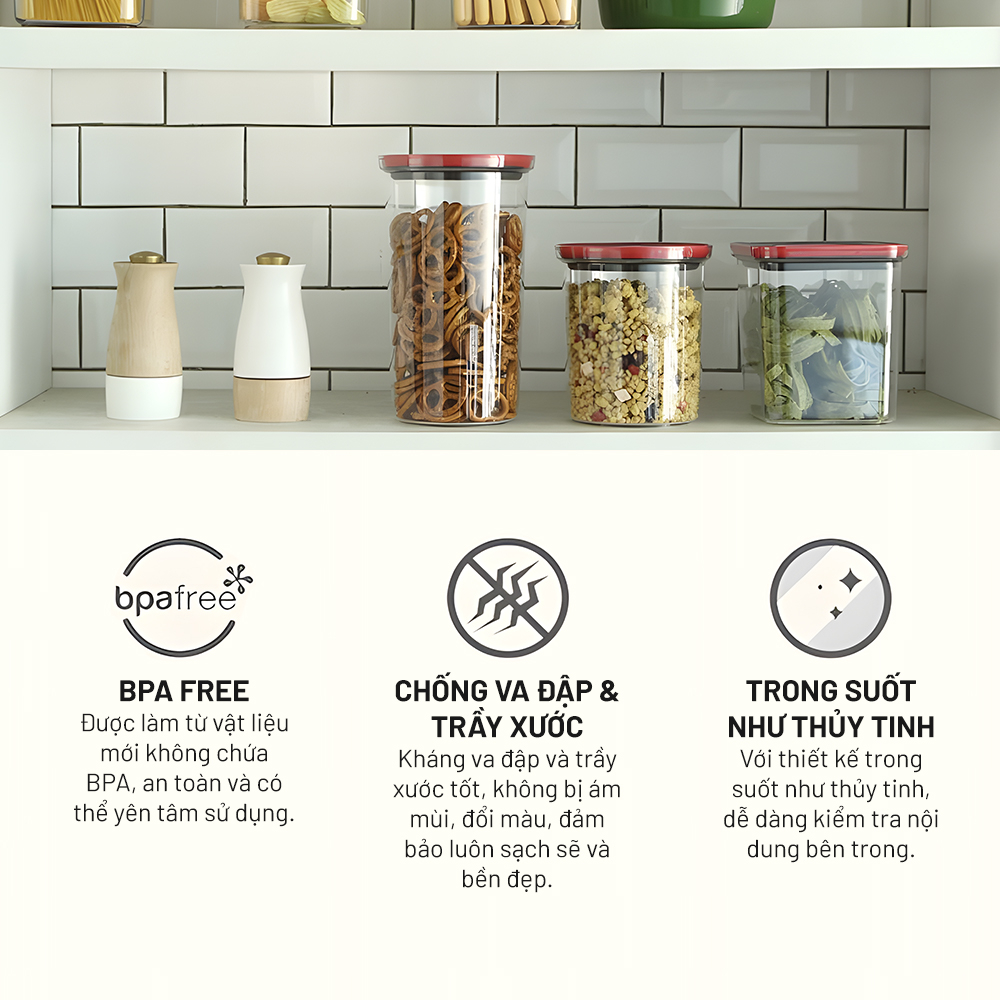 Thông số sản phẩm: *Hộp miệng chữ nhật *Hộp miệng tròn Đặc điểm nổi bật Cơ chế khóa vặn thông minh: Nắp Modem độc đáo, thao tác vặn/xoay đơn giản để mở hoặc đóng hộp. Viền silicon cao cấp giãn nở và ép chặt vào thành hộp, ngăn không khí lọt vào, giữ thực phẩm tươi ngon lâu hơn. Lợi ích khi sử dụng Chất liệu: Lưu ý: Ký hiệu nhựa số 7 (Other) dưới đáy hộp chỉ là nhóm phân loại chung, trong đó có nhiều loại nhựa khác nhau. Riêng nhựa AS của sản phẩm này hoàn toàn không chứa BPA, an toàn khi bảo quản thực phẩm. Hướng dẫn sử dụng & bảo quản Không đổ nước nóng vào hộp. Không sử dụng chất tẩy rửa hay vật liệu mài mòn để vệ sinh. Tránh va đập mạnh. Không đựng đồ uống có ga hoặc thực phẩm lên men vì áp suất có thể làm hỏng cơ chế khóa. Không tự ý tháo rời nắp. Tránh vặn núm ra ngoài phạm vi khóa được chỉ định. Hộp không chịu nhiệt cao, KHÔNG dùng trong lò vi sóng, nồi chiên không dầu, lò nướng. Chỉ dùng để bảo quản thực phẩm trong tủ lạnh, tủ đông hoặc máy rửa bát. Nếu cần hộp chịu nhiệt, hâm nóng được trong lò vi sóng/lò nướng, hãy chọn hộp thủy tinh borosilicate Neoflam WaveLock. |