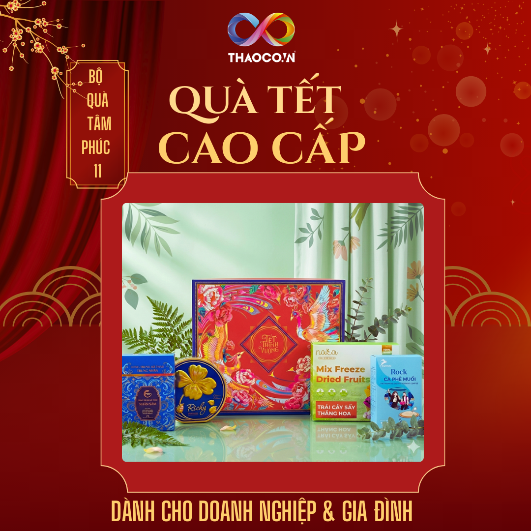 Tất cả sản phẩm trong hộp đều có thương hiệu, bao bì đầy đủ và nguồn gốc rõ ràng. Thaoco là đơn vị tuyển chọn và phối quà, không sản xuất sản phẩm lẻ.