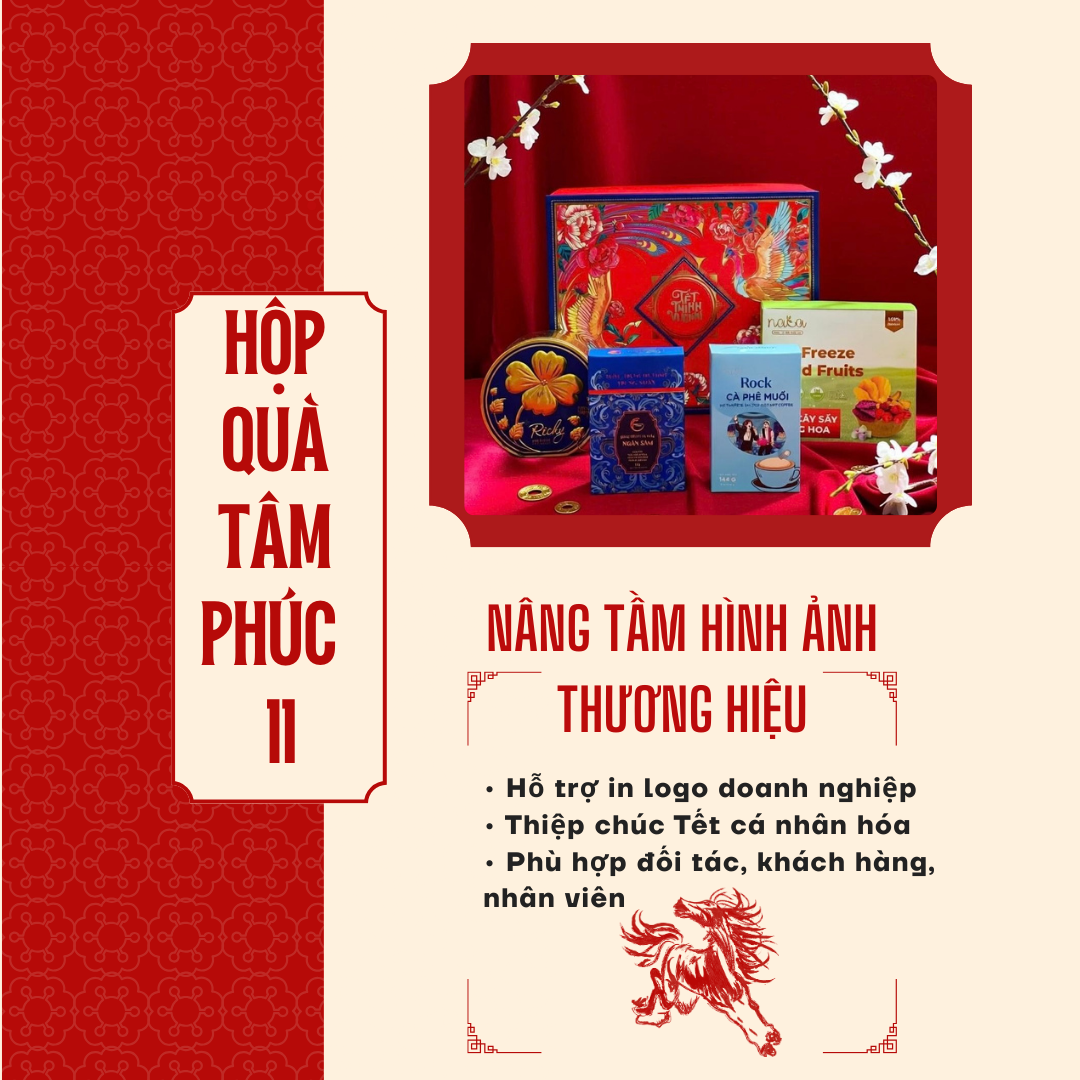 “Tâm Phúc 11” mang thông điệp phúc đủ đầy – may mắn – thịnh vượng, là lời chúc nhẹ nhàng nhưng trọn vẹn gửi đến người nhận trong dịp đầu năm mới.