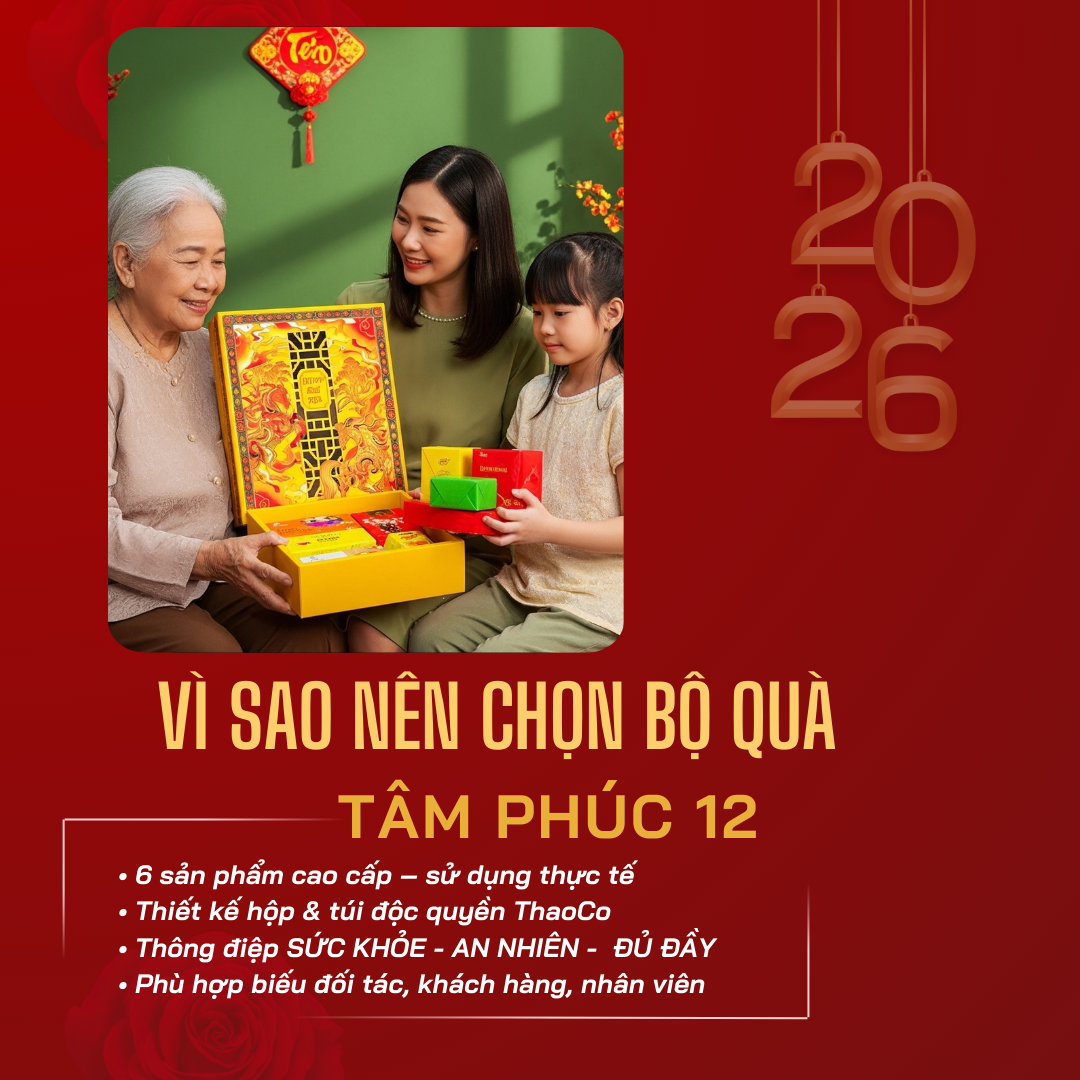 | 6 | Bộ hộp & túi Tâm Phúc 12 – Thaoco | Việt Nam | Hộp + túi đồng bộ | 01 bộ | Theo NSX |