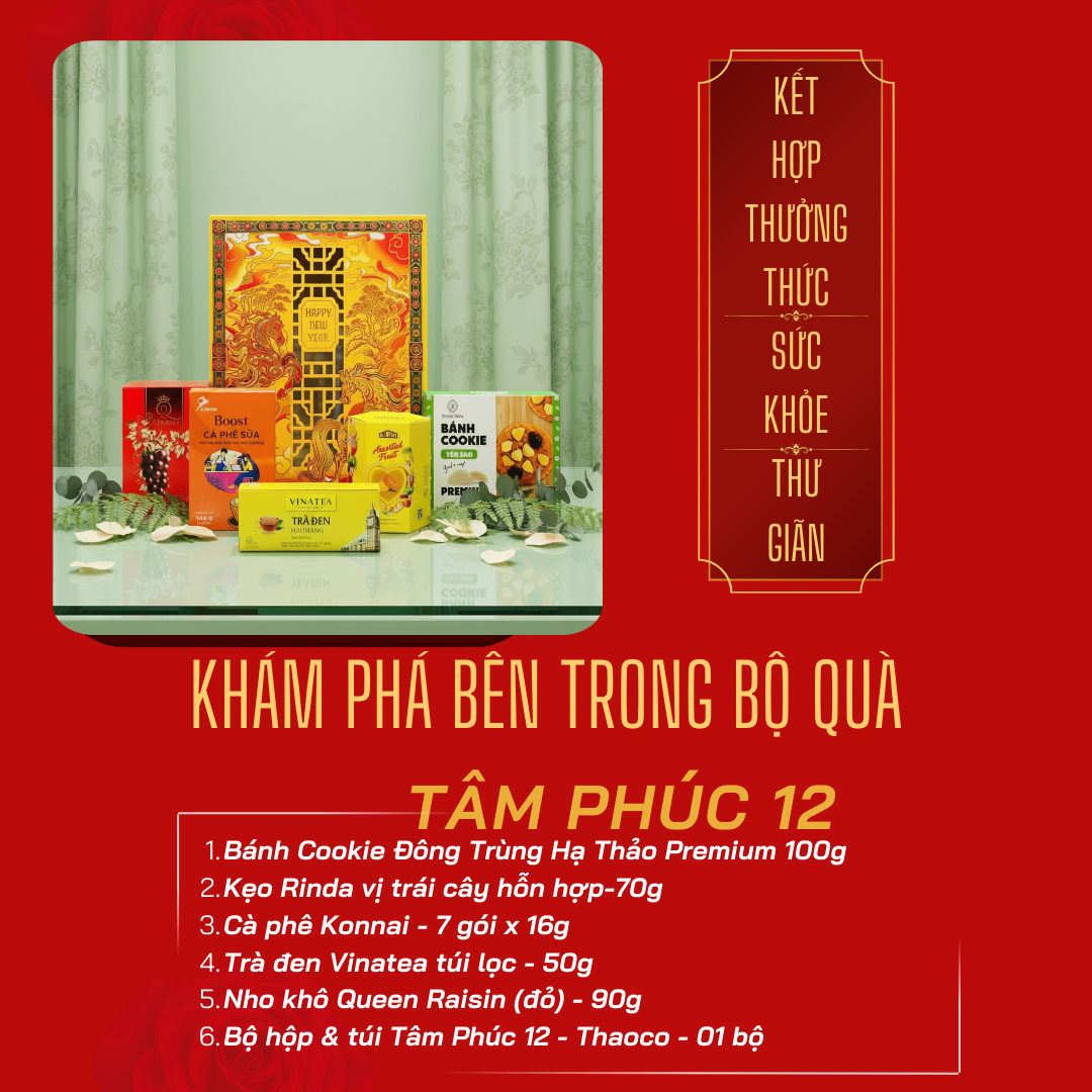 Hộp Quà Tâm Phúc 12 được tuyển chọn kỹ lưỡng với các sản phẩm dễ dùng, hình thức đẹp và phù hợp nhiều đối tượng, giúp khách hàng tiết kiệm thời gian chuẩn bị quà .