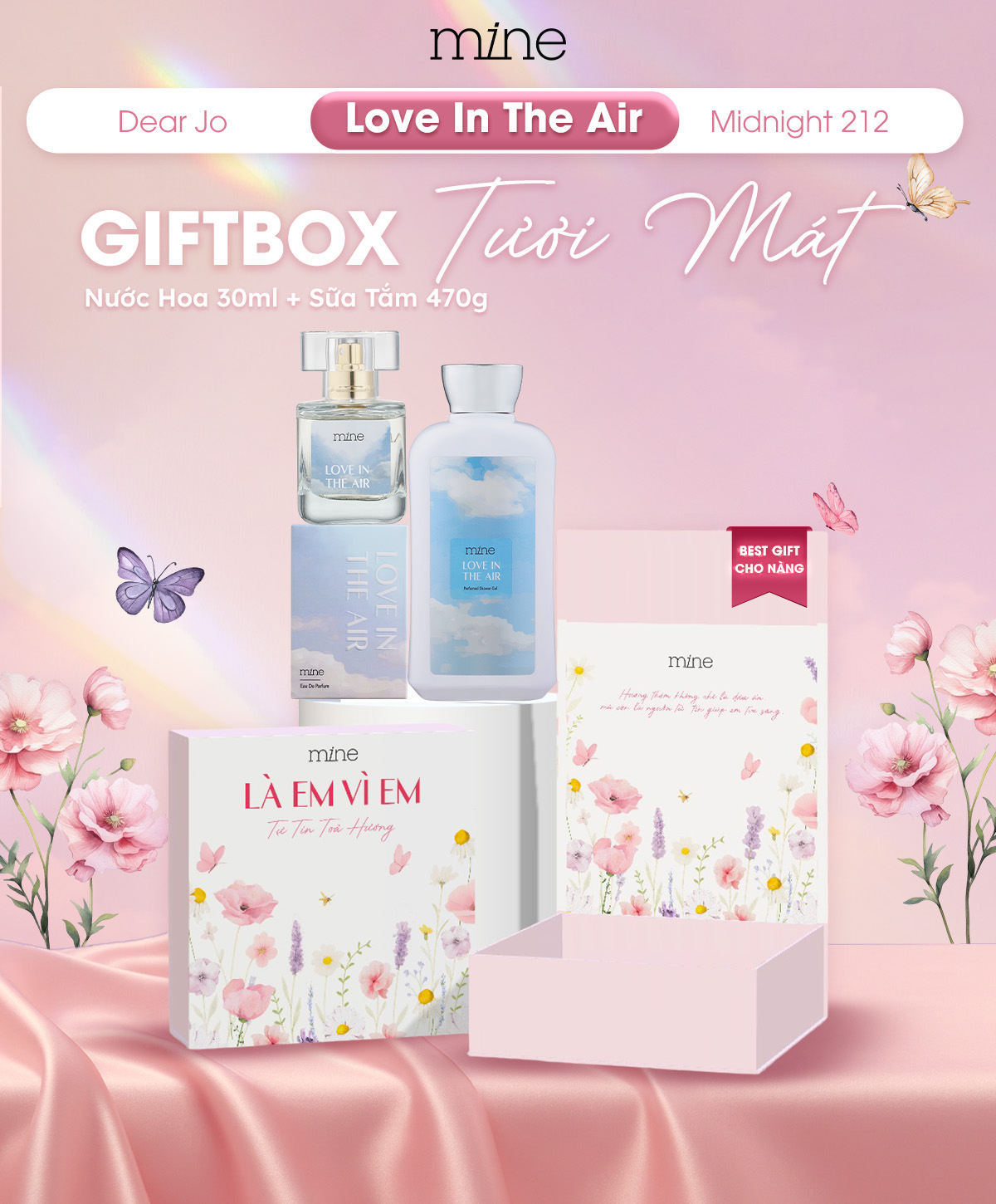 1. Tên sản phẩm: Hộp quà tặng Mine Sữa tắm & Nước hoa Love In The Air