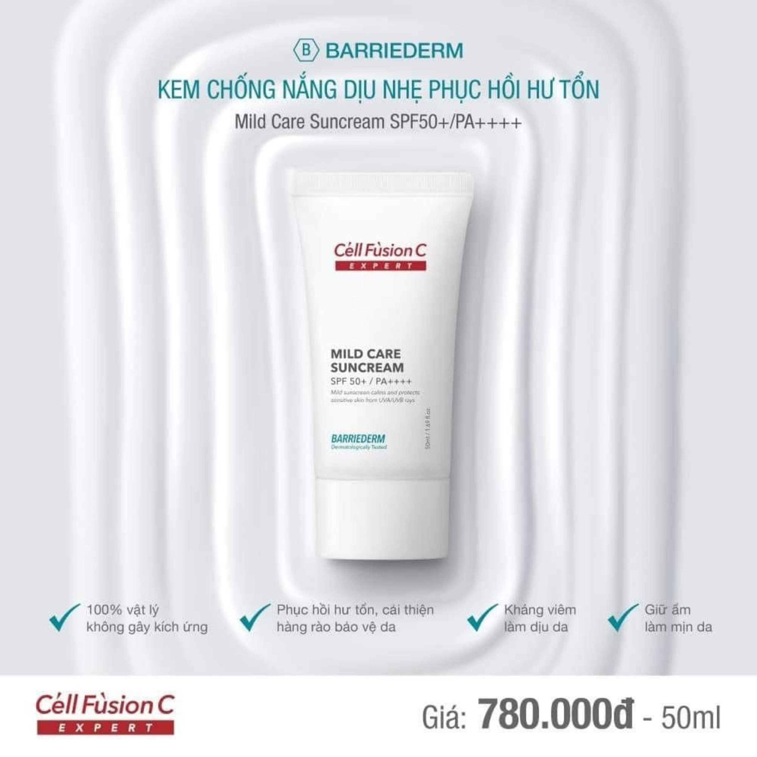 Tên sản phẩm: Kem chống nắng làm dịu da, tăng cường hàng rào bảo vệ da 50ml – Cell Fusion C Expert Mild Care Suncream SPF 50+/ PA++++