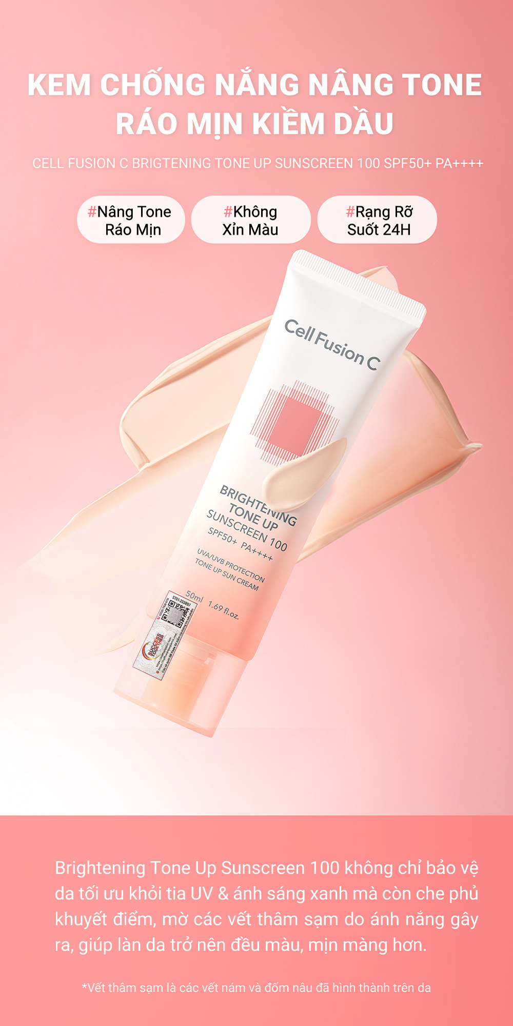 Kem Chống Nắng Nâng Tone Ráo Mịn Kiềm Dầu Cell Fusion C Brightening Tone Up Sunscreen 100 SPF50+ PA ++++ 50ml