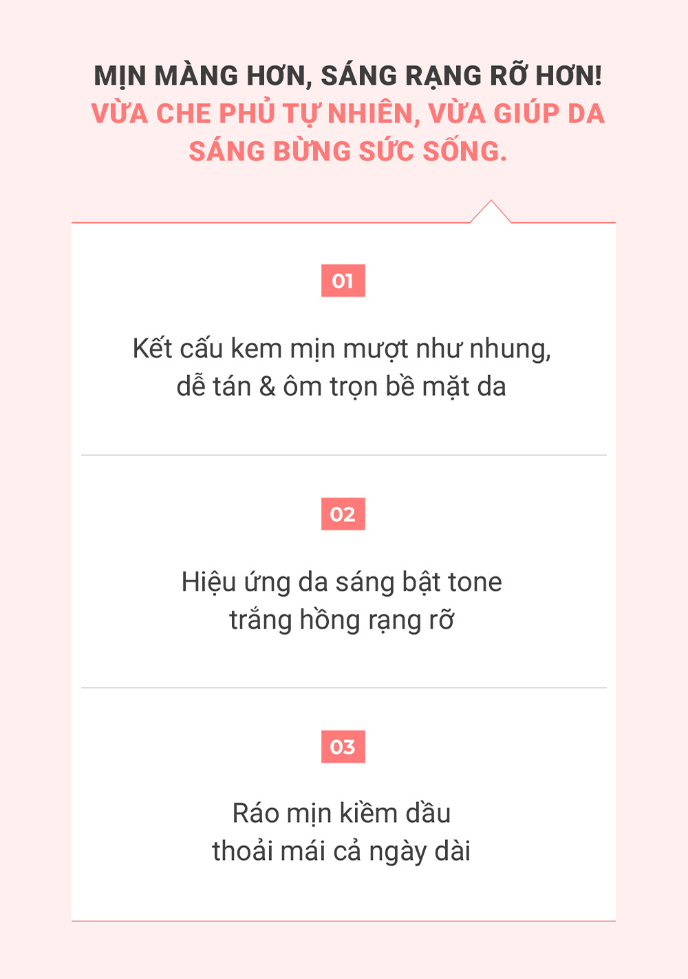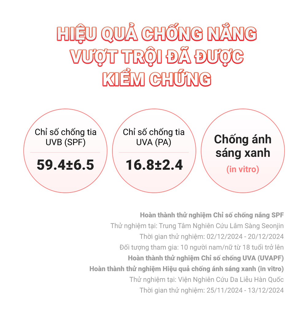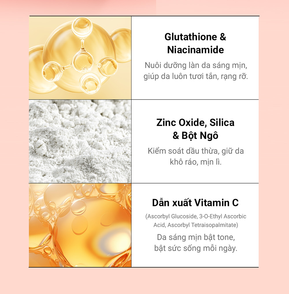 Công dụng Chống nắng, nâng tông da, che khuyết điểm & thay thế kem nền