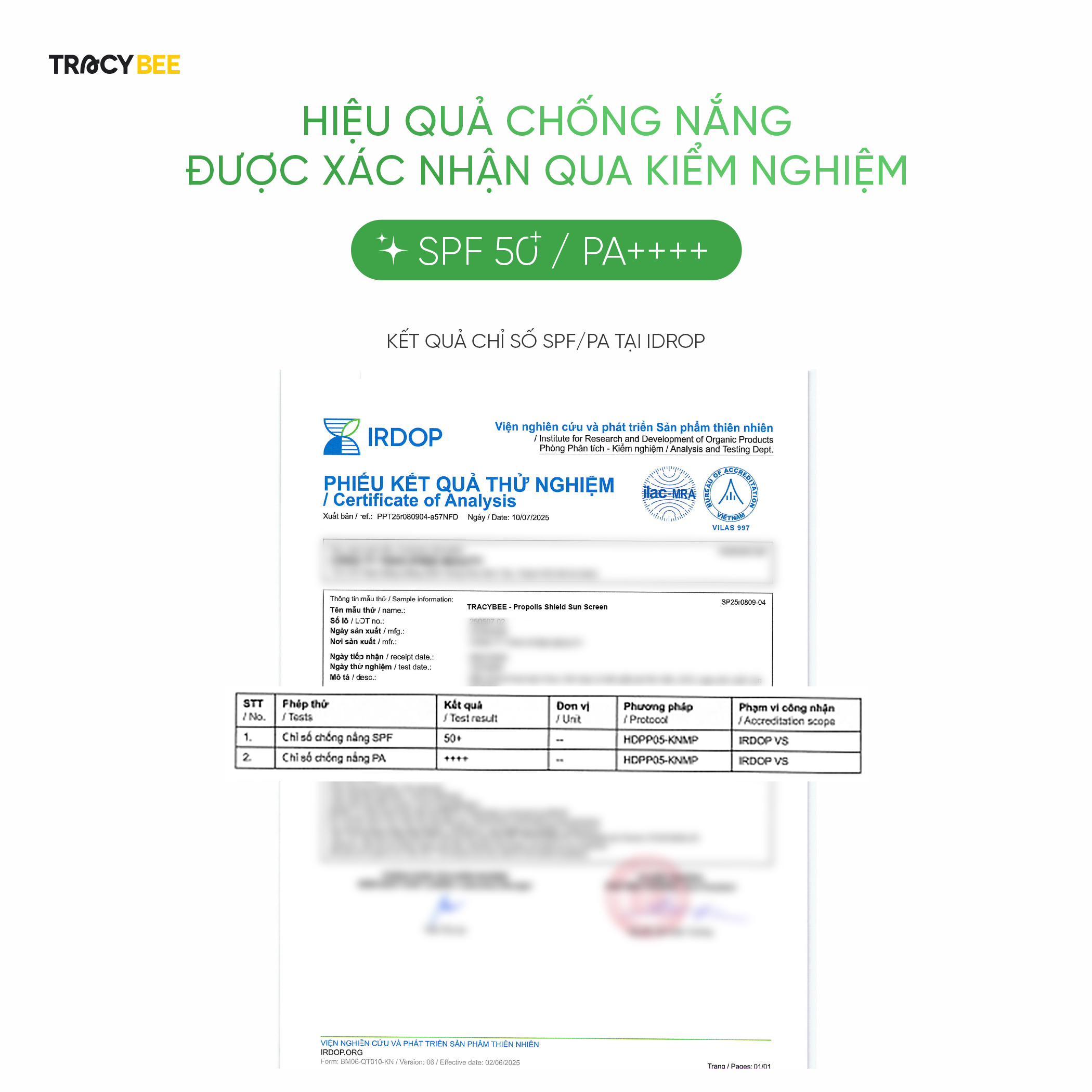 Bảng thành phần đầy đủ: Aqua, Ethylhexyl Methoxycinnamate, Dicaprylyl Carbonate, Propanediol, C15-19 Alkane, Methylene Bis-Benzotriazolyl Tetramethylbutylphenol, Isotridecyl Isononanoate, Propolis Extract, Bis-Ethylhexyloxyphenol Methoxyphenyl Triazine, Sodium Acrylate/Acryloyldimethyltaurate/Dimethylacrylamide Crosspolymer, Hydrolyzed Royal Jelly Protein, Gluconobacter/Honey Ferment Filtrate, Niacinamide, Scenedesmus Rubescens Extract, Salvia Hispanica Seed Extract, Lactobacillus Ferment, Isohexadecane, Decyl Glucoside, Acrylates/C10-30 Alkyl Acrylate Crosspolymer, Polysorbate 60, Ethylhexylglycerin, 1,2-Hexanediol, Propylene Glycol, Sorbitan Isostearate, Xanthan Gum, Disodium EDTA, Phenoxyethanol, Tromethamine.