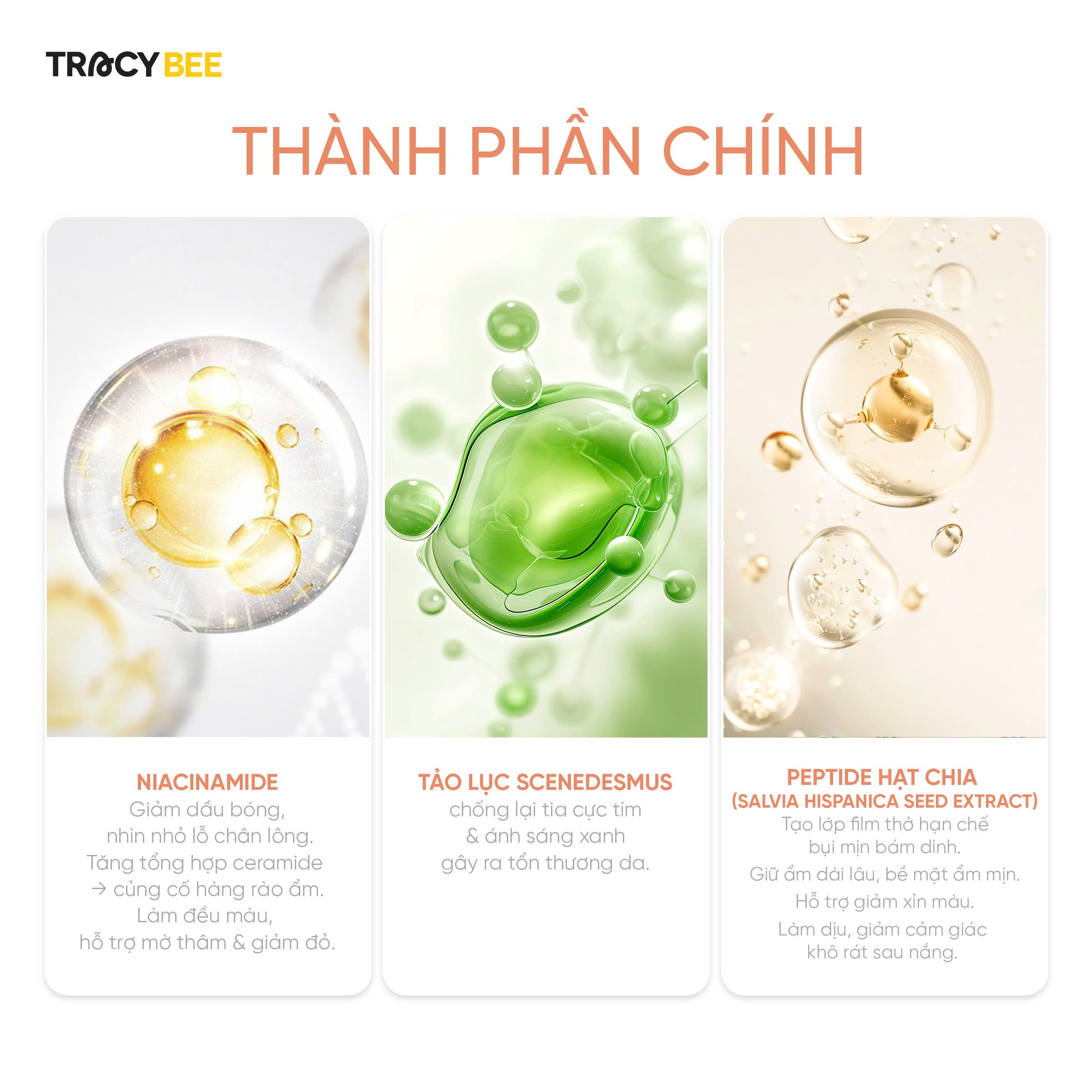 - Niacinamide (làm sáng, điều tiết dầu)