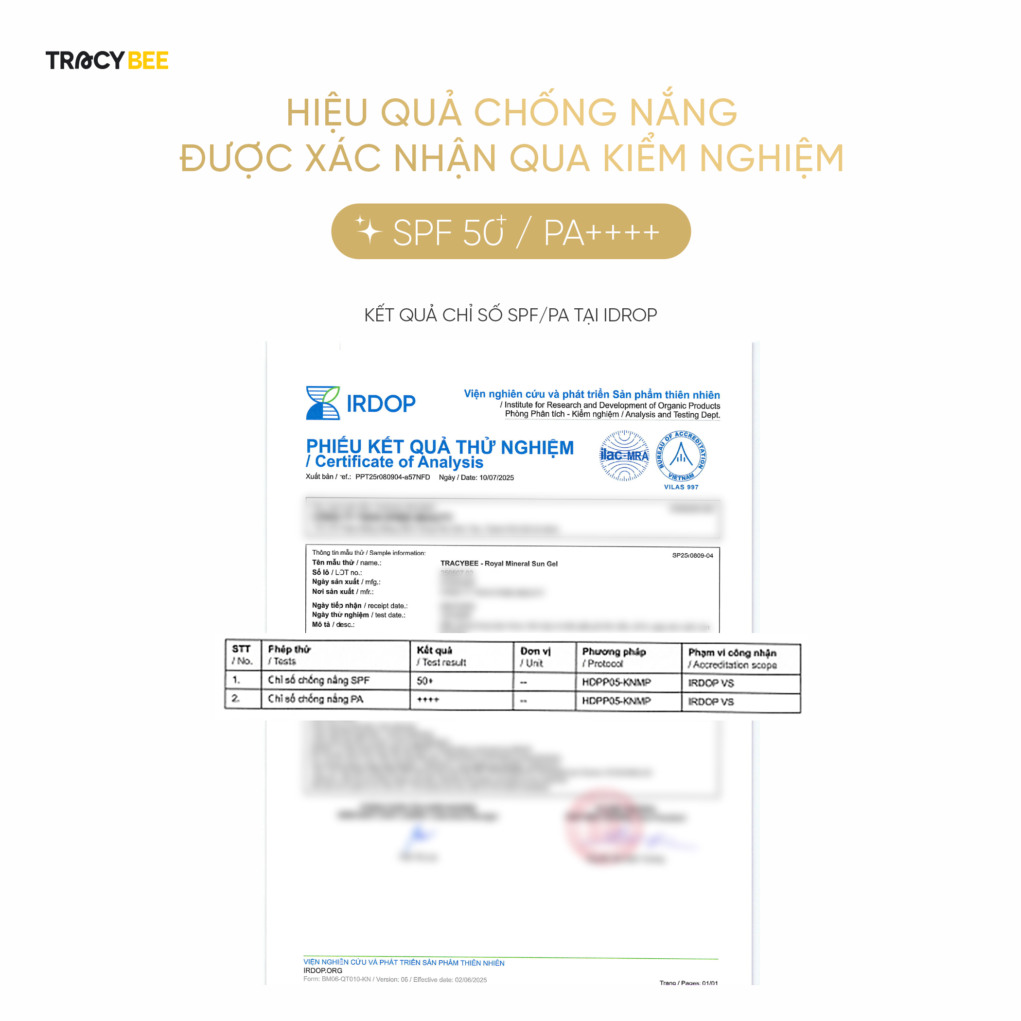 Bảng thành phần đầy đủ: Cyclopentasiloxane, Aqua, Zinc Oxide, Titanium Dioxide, Isotridecyl Isononanoate, Dicaprylyl Carbonate, Propanediol, Triethylhexanoin, Glycerin, Cetyl PEG/PPG-10/1 Dimethicone, PEG-10 Dimethicone, Propylene Glycol, Disteardimonium Hectorite, Polymethylsilsesquioxane, Stearic Acid, Gluconobacter/Honey Ferment Filtrate, Niacinamide, Hydrolyzed Royal Jelly Protein, Salvia Hispanica Seed Extract, Lactobacillus Ferment, Scenedesmus Rubescens Extract, Asiaticoside, Madecassic Acid, Asiatic Acid, Echium Plantagineum Seed Oil, Cnidium Monnieri Fruit Extract, Rosmarinus Officinalis (Rosemary) Leaf Extract, Solidago Virgaurea (Goldenrod) Extract, Vitis Vinifera (Grape) Seed Extract, Pinus Densiflora Leaf Extract, Alumina, Dimethicone/Vinyl Dimethicone Crosspolymer, 1,2-Hexanediol, Triethoxycaprylylsilane, Octyldodecanol, Octyldodecyl Oleate, Octyldodecyl Stearoyl Stearate, Caprylyl Glycol, Ethylhexylglycerin, Phenoxyethanol, Alcohol.