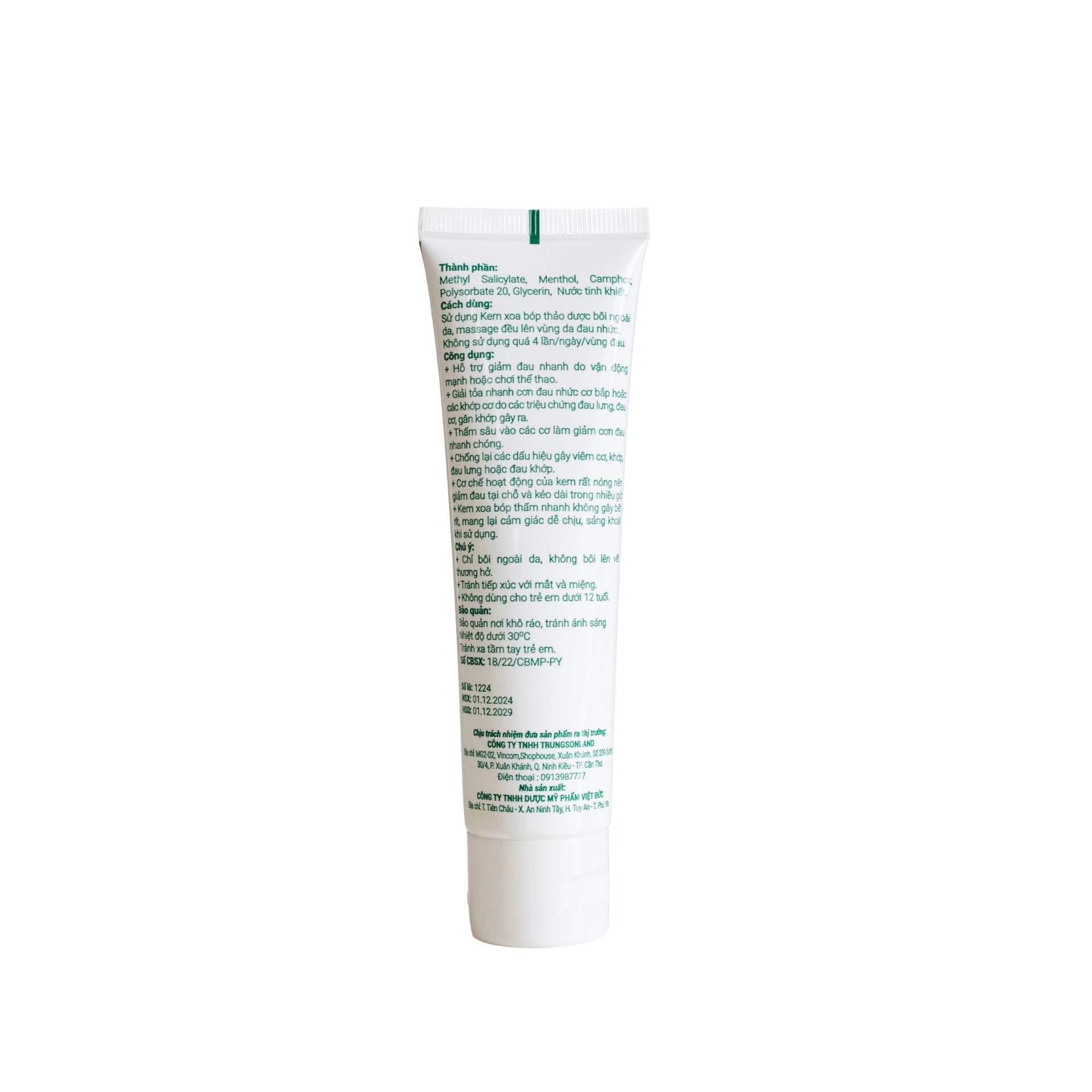 KEM XOA BÓP TRUNG SƠN Với công thức chứa Methyl Salicylate, Menthol, Eucalyptus Oil và các tinh chất thảo dược giúp giảm đau nhức cơ, xương khớp, hỗ trợ giảm sưng viêm và thư giãn cơ bắp. Thích hợp cho người đau mỏi do vận động, chơi thể thao hoặc người lớn tuổi gặp vấn đề về xương khớp.