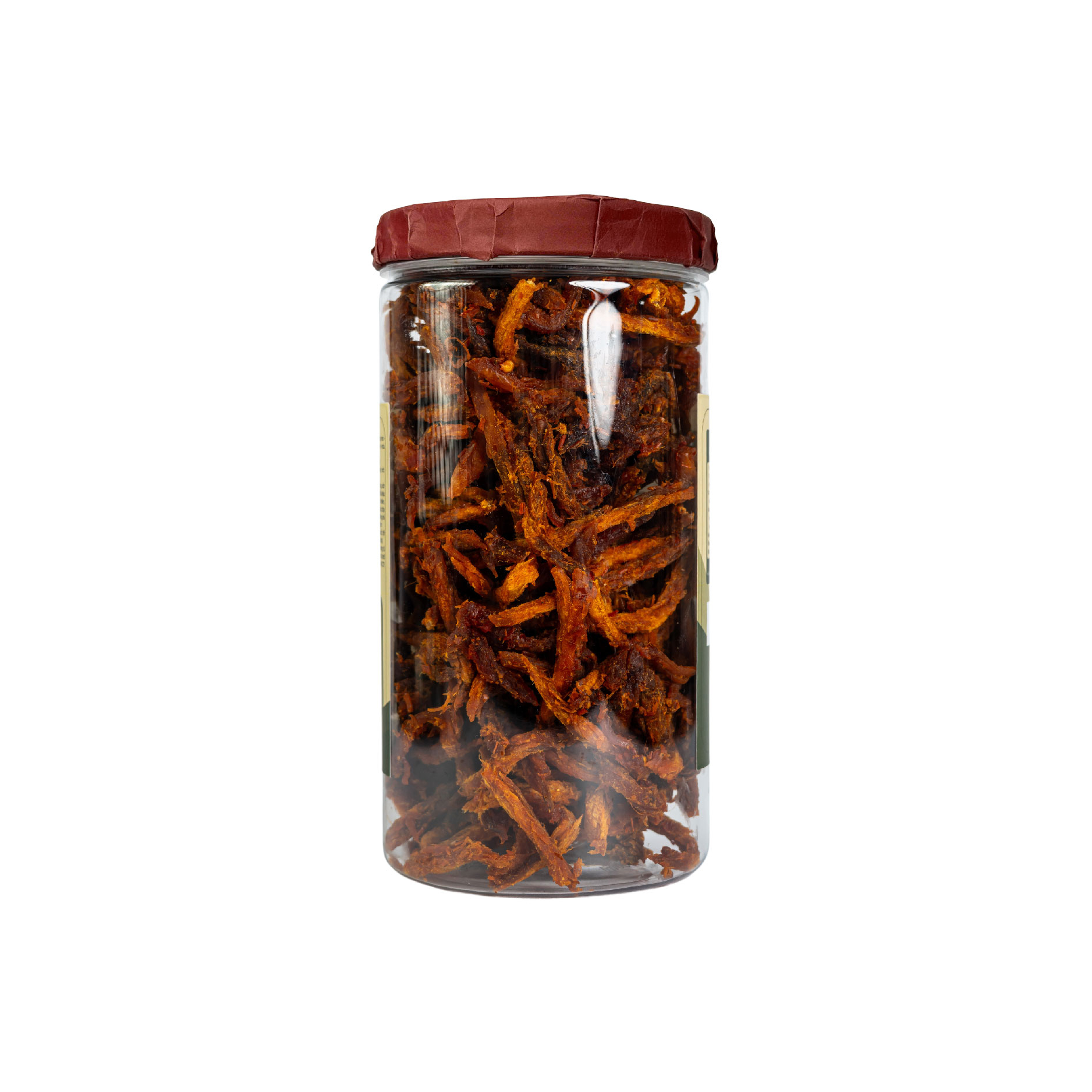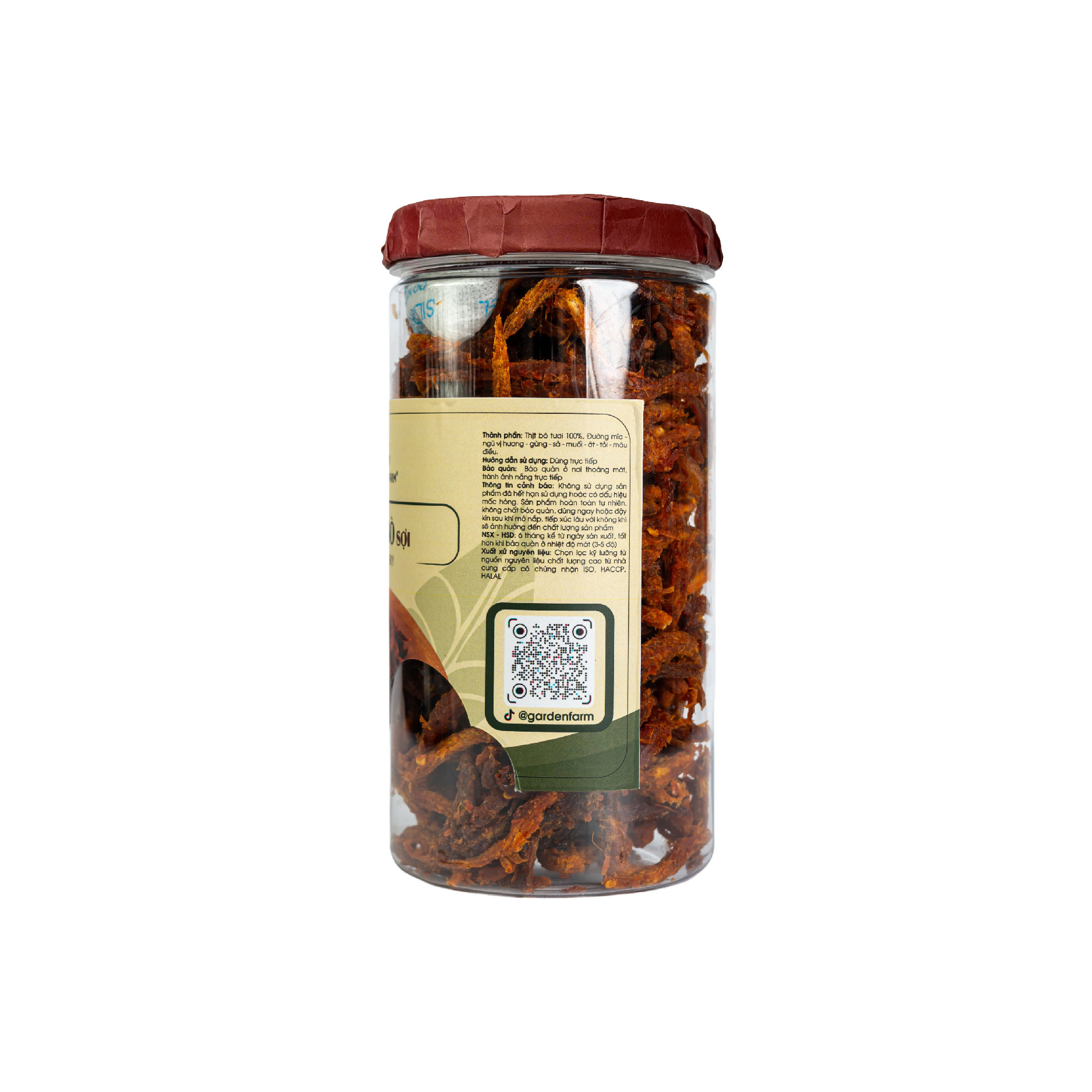 Khô bò sợi Garden Farm mang hương vị đậm đà đúng chất bò, thơm nức mùi gia vị và chút cay the cực bắt miệng. Sợi bò được xé nhỏ vừa ăn, dai mềm tự nhiên và thấm đều sốt ướp, nhai đến đâu cảm nhận vị ngọt thịt bò lan tỏa đến đó. Hương cay – mặn – ngọt hòa quyện hài hòa giúp món khô bò trở thành “mồi nhâm nhi quốc dân”, ăn vặt, ăn kèm hay lai rai đều hợp. Gọn nhẹ, tiện mang theo, mở ra là thơm lừng kích thích vị giác ngay lập tức.