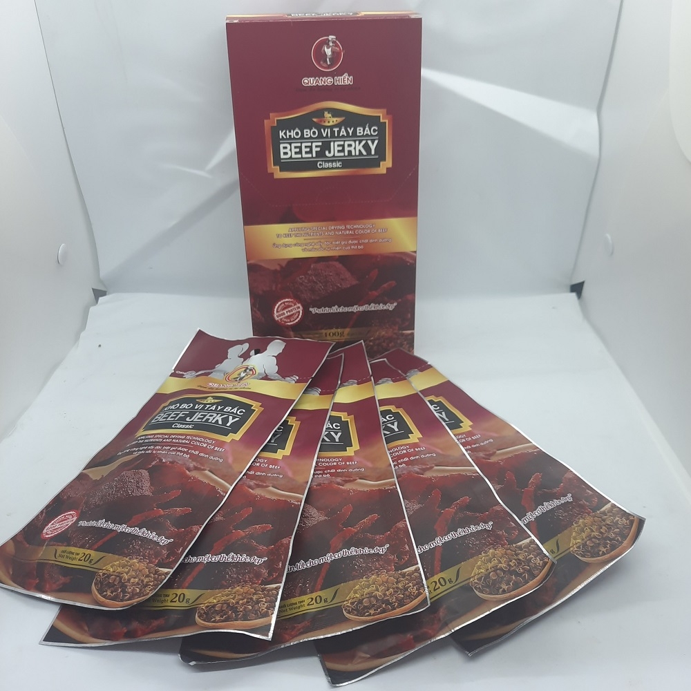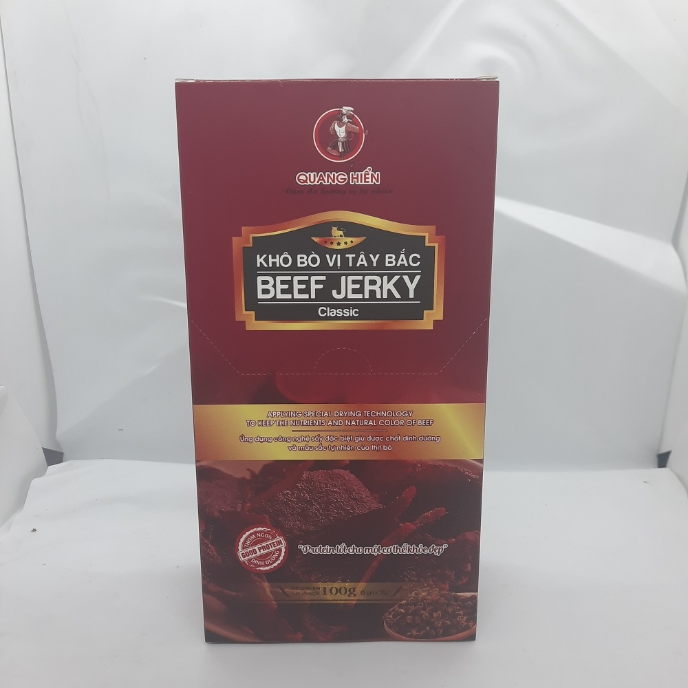 1. Tên sản phẩm: Khô Bò Beef Jerky vị Tây Bắc (Hộp 100gr)