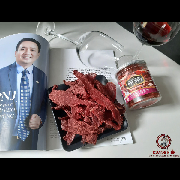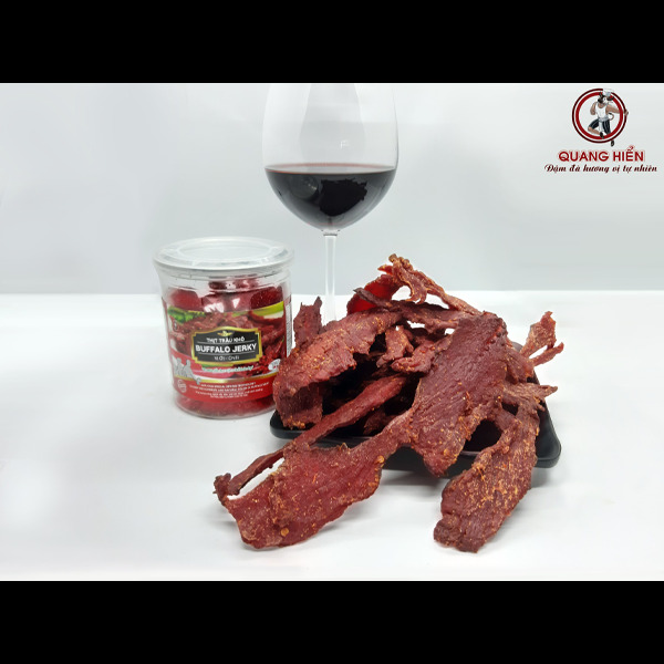 4. Thành phần: Thịt bò 90%, bột tỏi, đường, muối, hạt mắc khén, hạt dỗi, chiết xuất nấm men, chất bảo quản tự nhiên VMC nature (INS: 261,325,316,511)