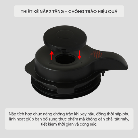 Chế độ khóa an toàn đảm bảo rằng máy chỉ có thể hoạt động khi tất cả các khớp được lắp đúng cách, giúp tránh được các tai nạn không mong muốn. Đồng thời, nắp chống trào được trang bị để đảm bảo vệ sinh và an toàn thực phẩm cho người sử dụng.