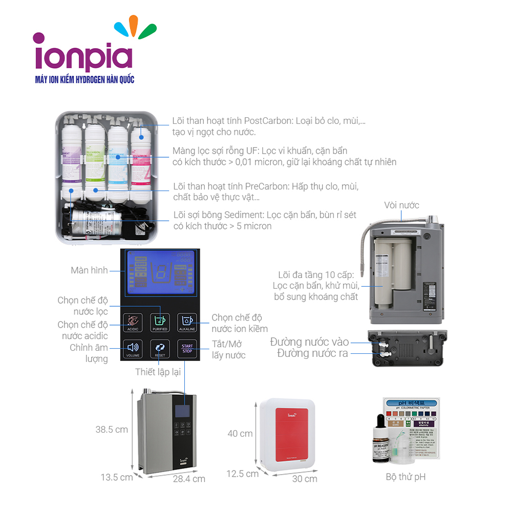 * Máy lọc nước IONPIA tạo ra Bốn mức nước ion kiềm: