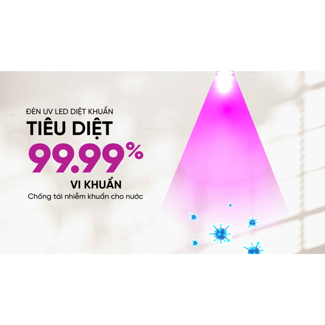 Kèm theo cấp lọc đèn UV LED: diệt khuẩn và chống tái nhiễm khuẩn, cao cấp hơn lõi nano bạc vì có khả năng diệt khuẩn bằng tia UV (sóng điện từ) và không tốn chi phí thay lõi X2 khả năng diệt khuẩn với công nghệ Nano bạc kết hợp đèn UV led