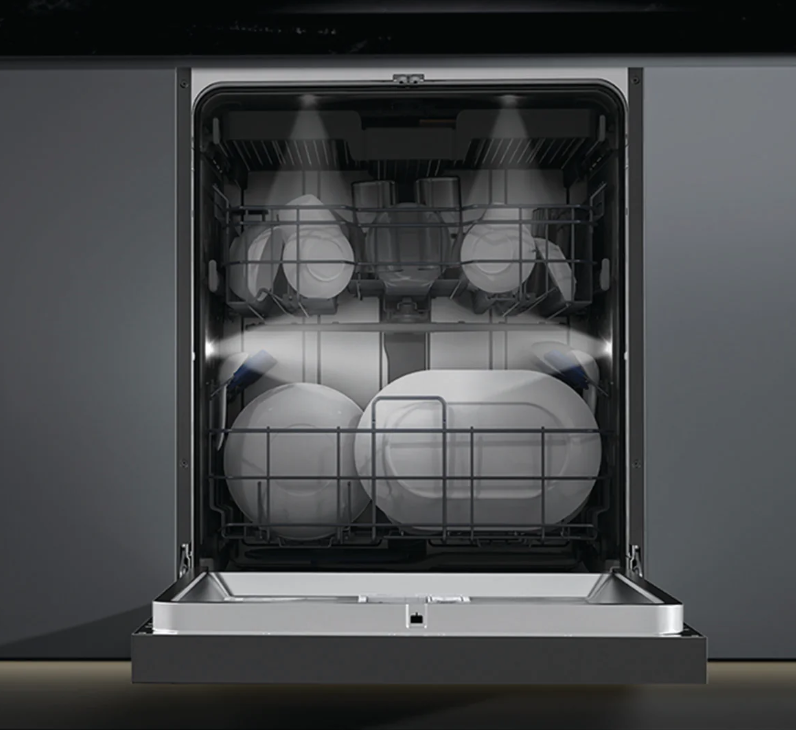 • Khay rửa: 3 tầng với ngăn rửa dao kéo phía trên cùng có thể tự do tháo lắp.