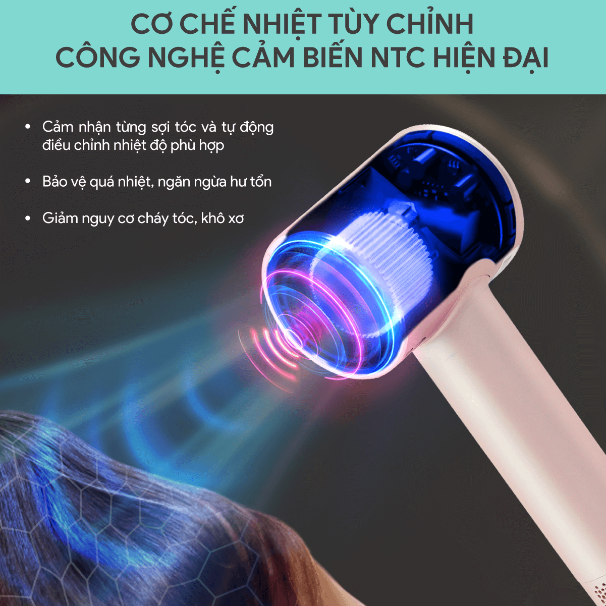 Đặc biệt hơn nữa, máy sấy tóc BlueStone HDB-1975 có cơ chế nhiệt tùy chỉnh từ công nghệ cảm biến NTC hiện đại. Với công nghệ này, máy sẽ có thể cảm nhận từng sợi tóc và tự động điều chỉnh mức nhiệt phù hợp. Bảo vệ da đầu và tóc khi quá nhiệt cũng như giảm nguy cơ cháy tóc, khô xơ tóc.