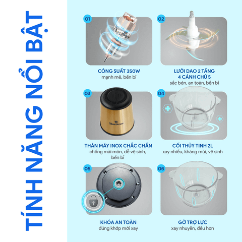 Công suất 350W: vận hành mạnh mẽ, xay nhuyễn đồng đều và nhanh chóng.